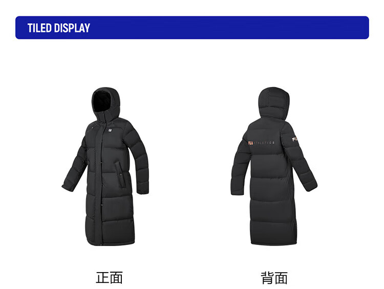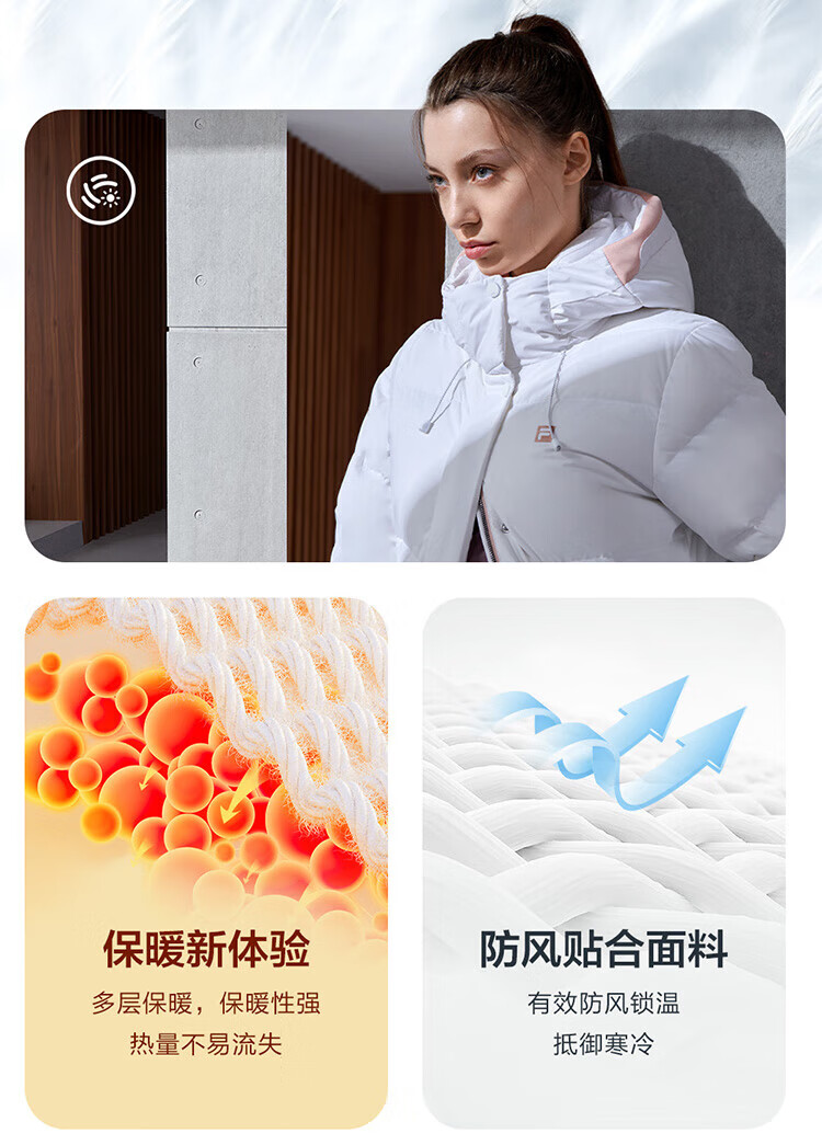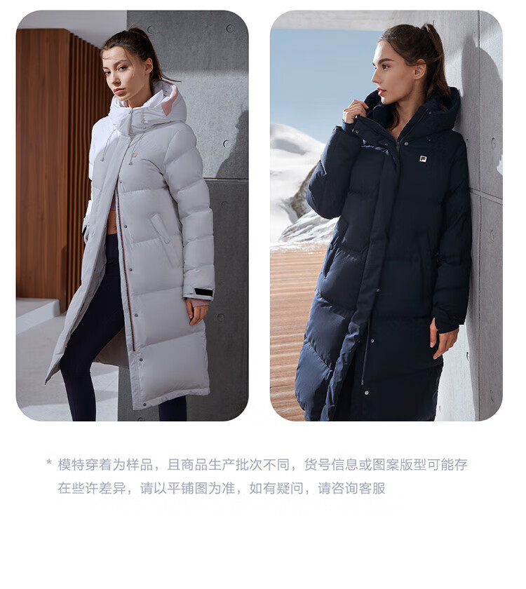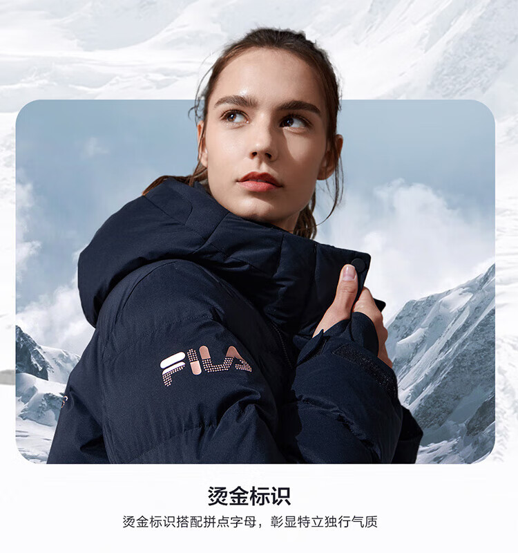 FILA official women's mid-length down jacket 2025 winter 90 goose down high-pile 740+ warm and cold-proof jacket