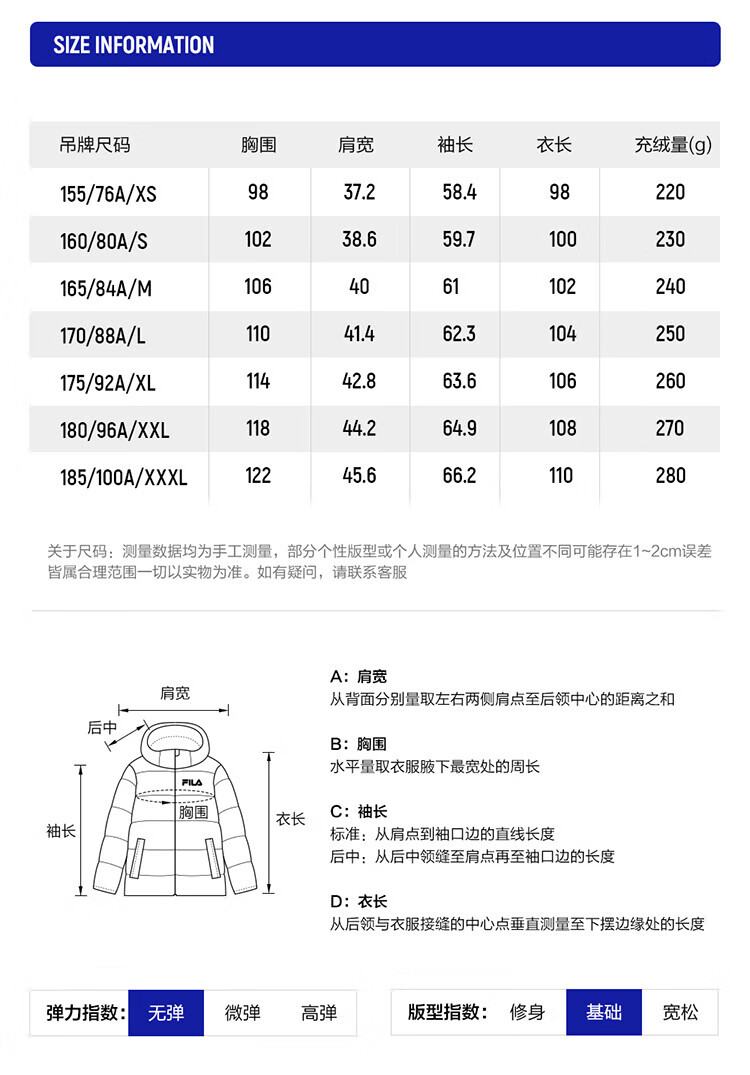 China (cm) 165 / 88-90 170 / 96-98 175 / 108-110 180 / 118-122 185 / 126-130