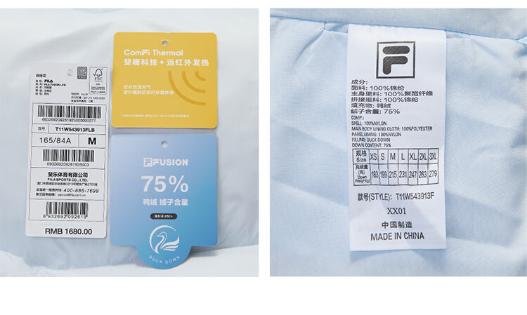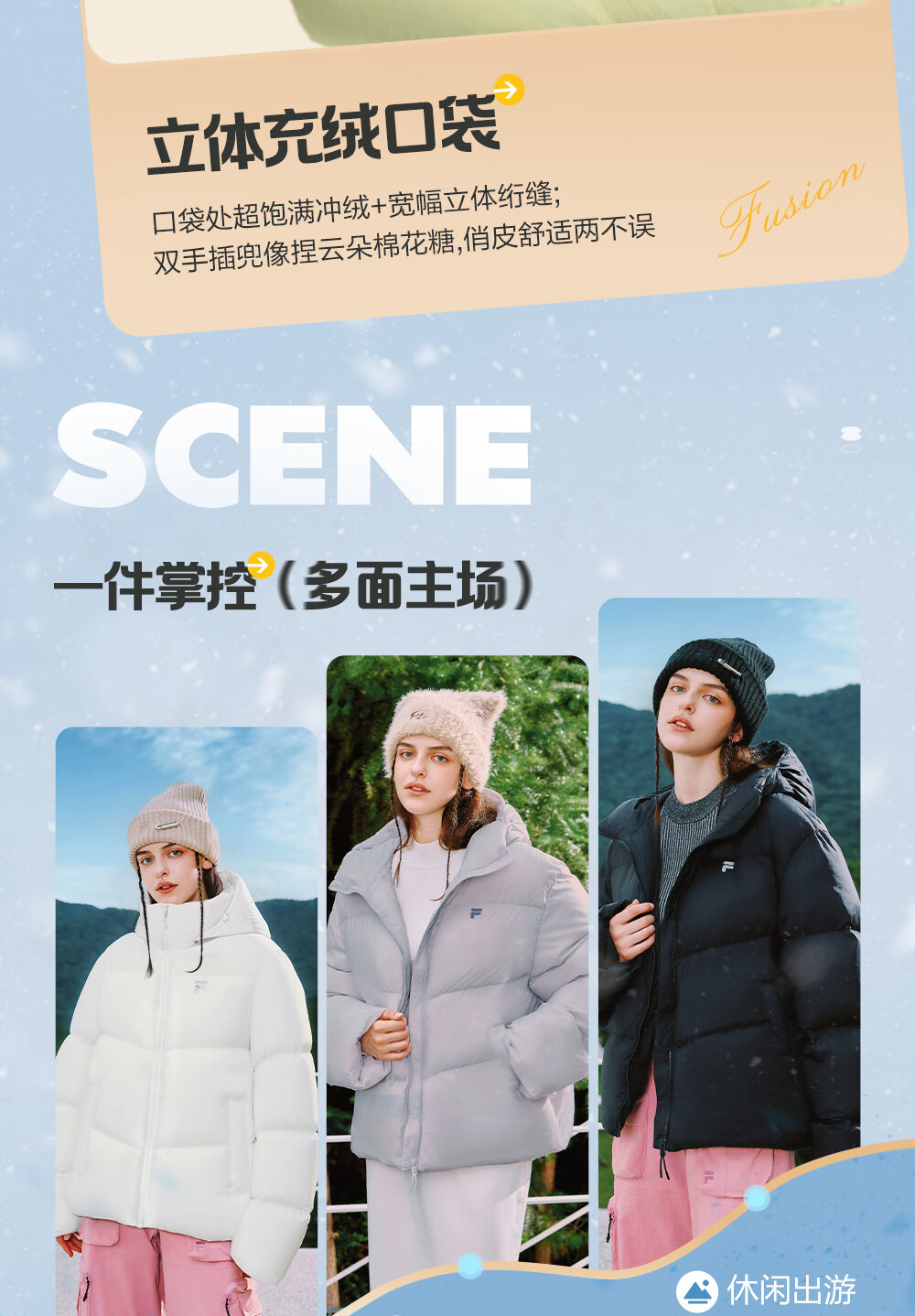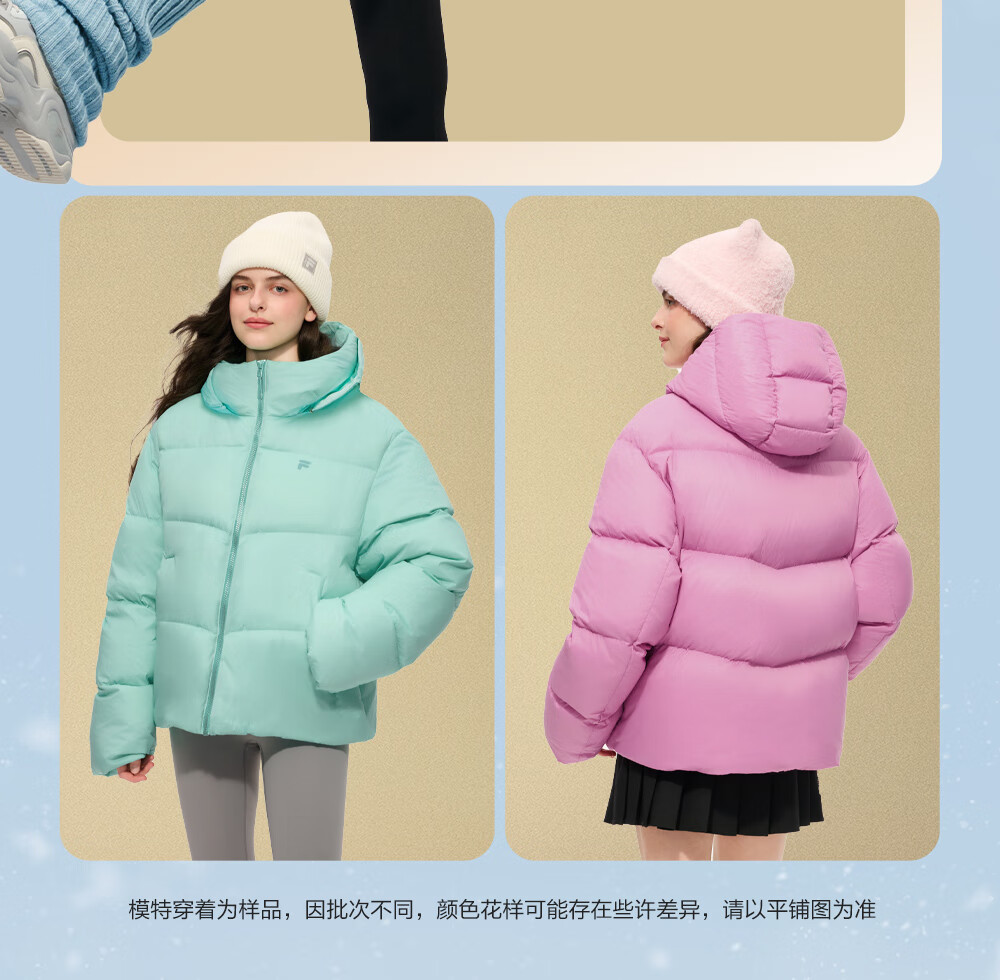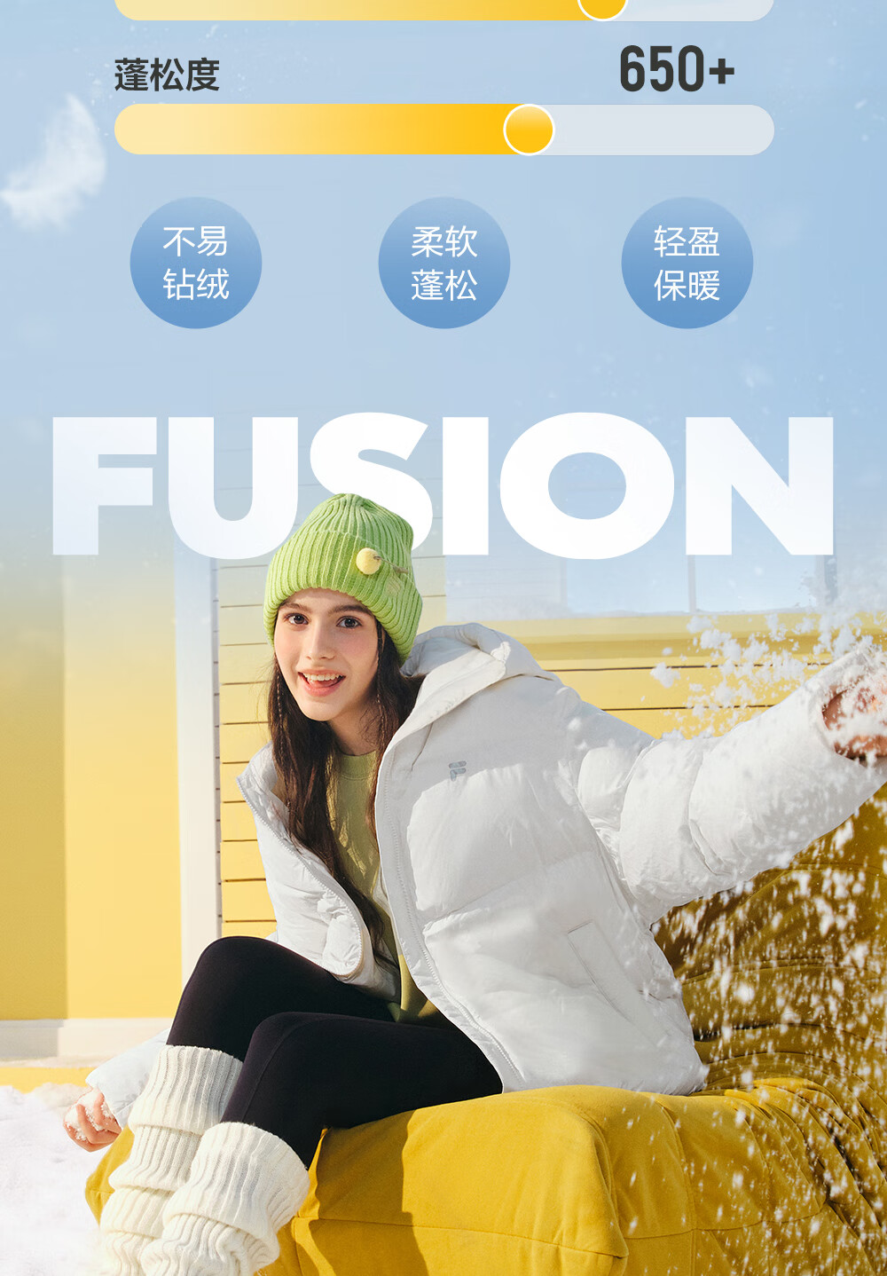 FILA FUSION Fila trendy brand down jacket for women 2025 winter new casual loose warm hooded jacket, black-BK M 165/84A/M