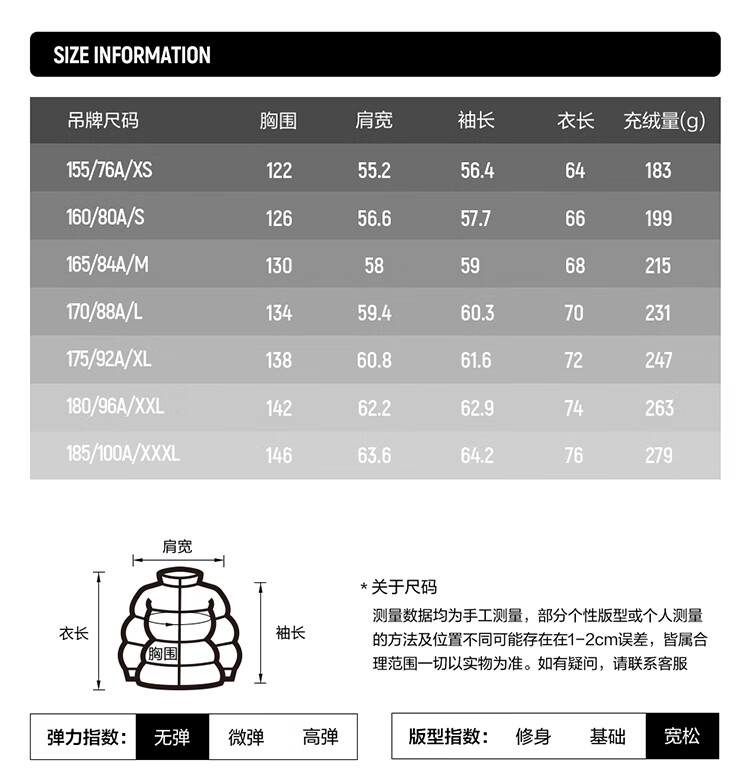 China (cm) 165 / 88-90 170 / 96-98 175 / 108-110 180 / 118-122 185 / 126-130