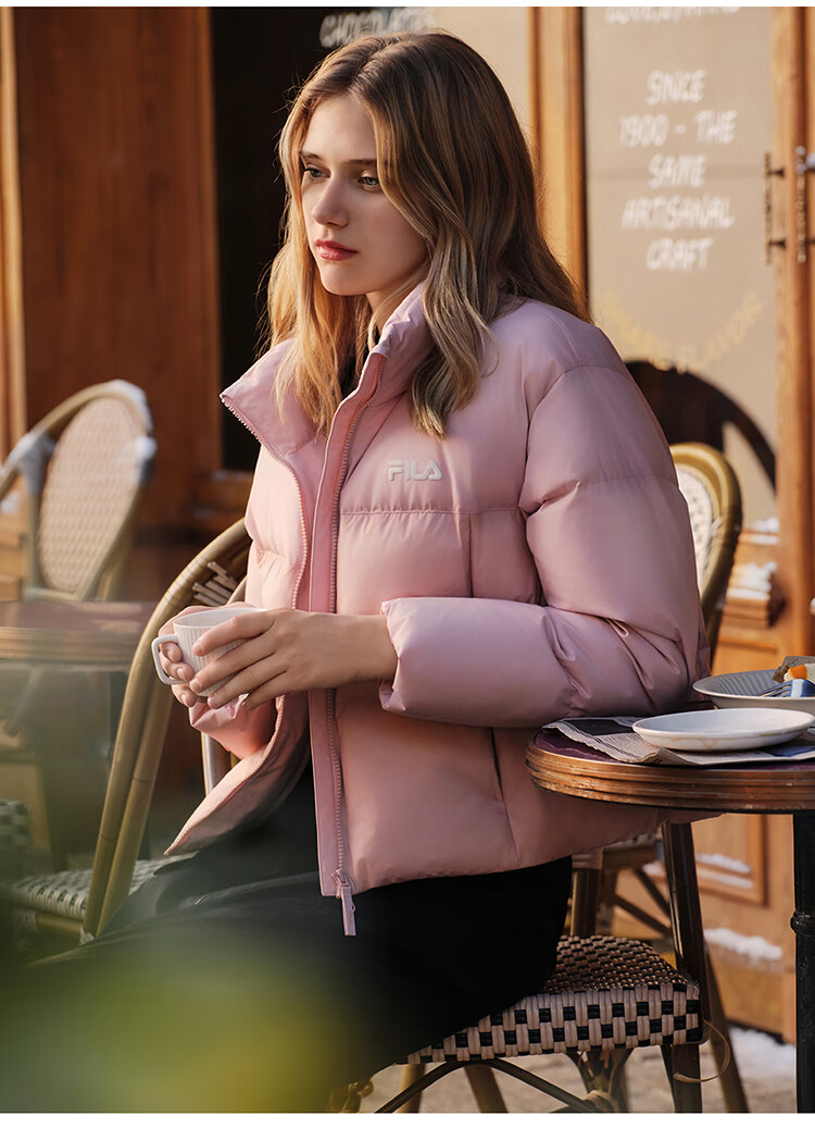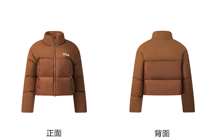 Женский пуховик FILA Yang Mi в том же стиле, новинка зимы 2025, непромокаемый короткий красочный пуховик RGB Mulan Brown-BN M 165/84A/M