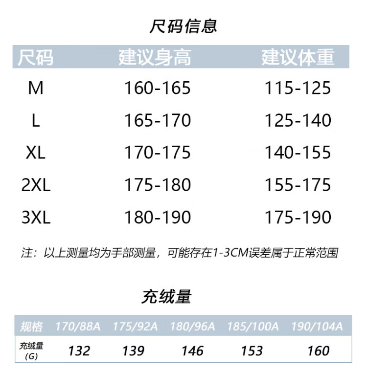 China (cm) 165 / 88-90 170 / 96-98 175 / 108-110 180 / 118-122 185 / 126-130