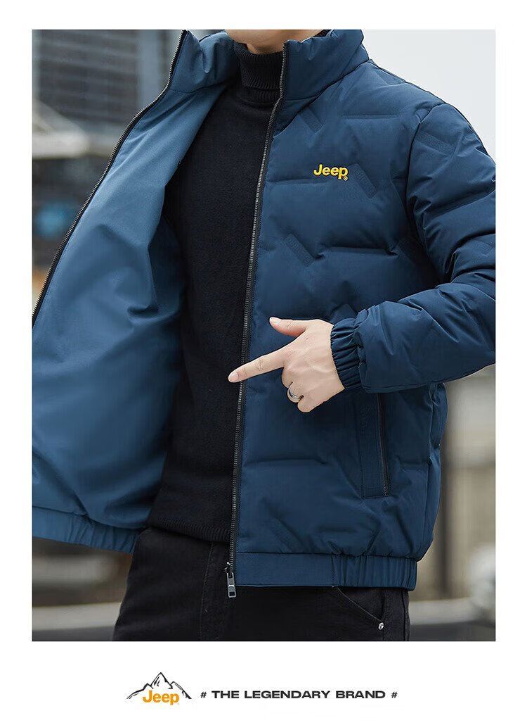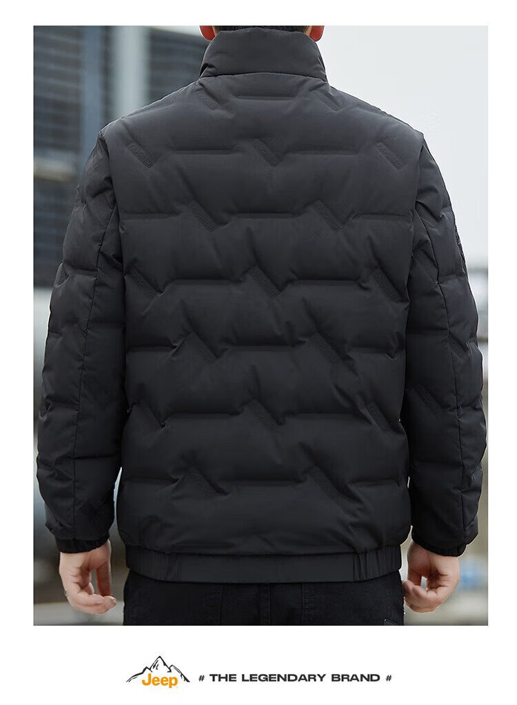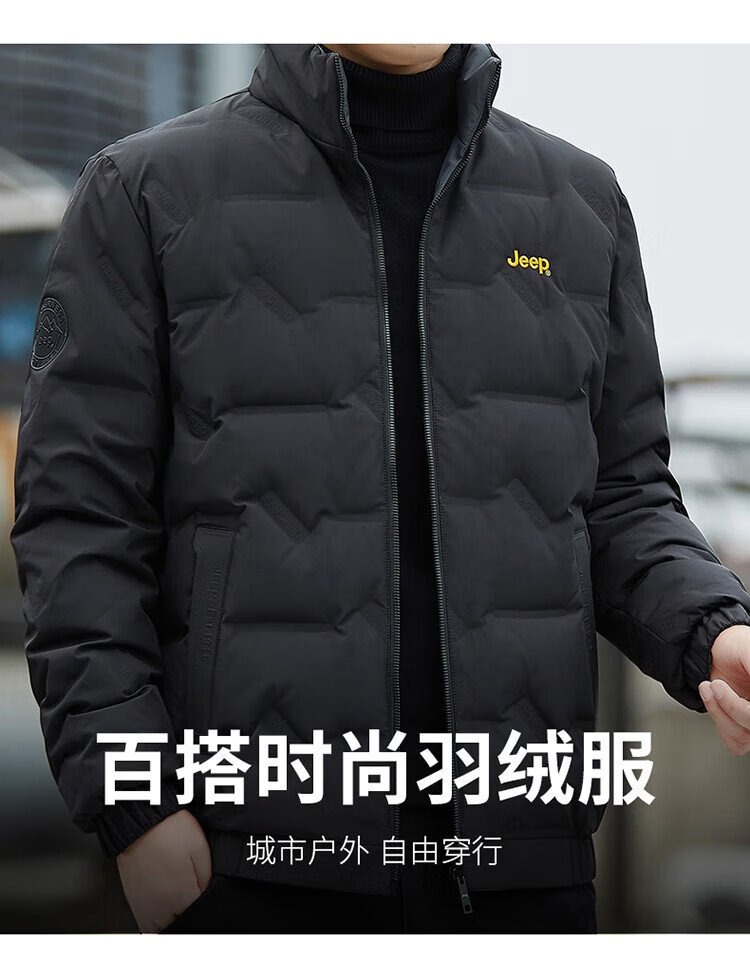 Jeep (JEEP) Down Jacket Men's Winter Short Casual Stand Collar Jacket Men's Warm Reversible Clothes Men's Black XL