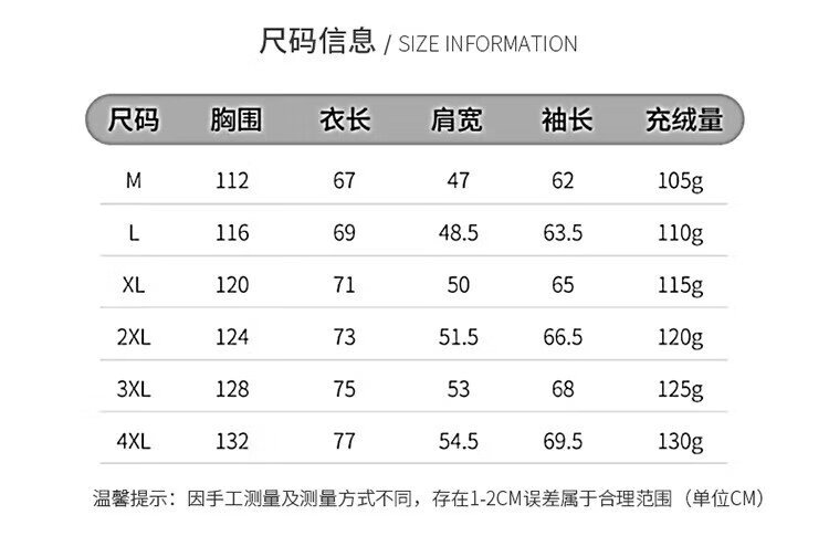 China (cm) 165 / 88-90 170 / 96-98 175 / 108-110 180 / 118-122 185 / 126-130