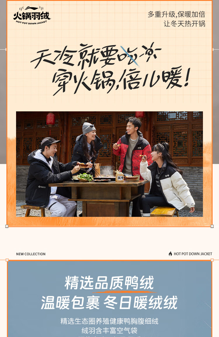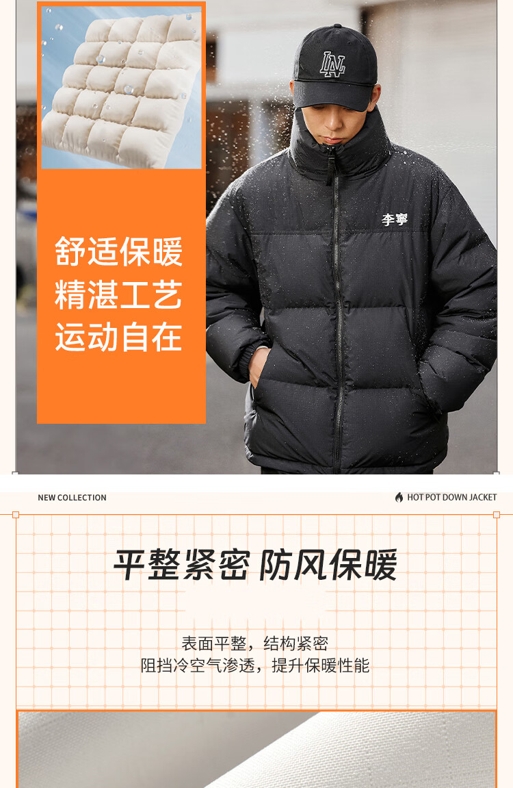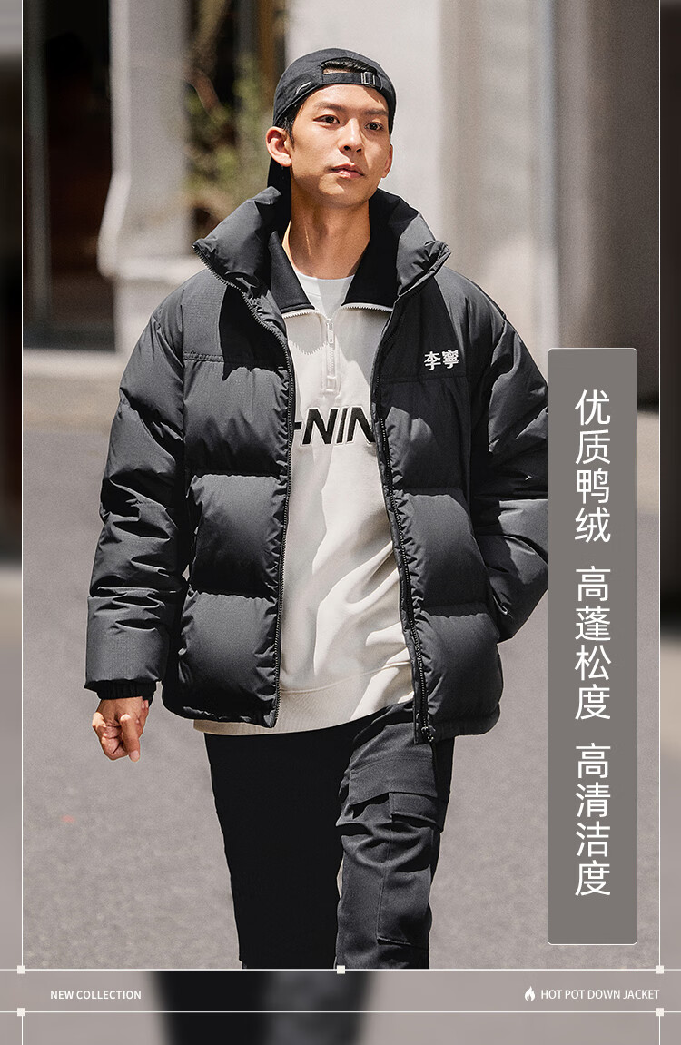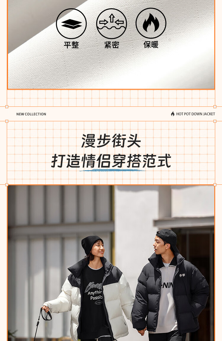 李宁羽绒服男女同款火锅加厚保暖宽松立领鸭绒短款防风面包服外套