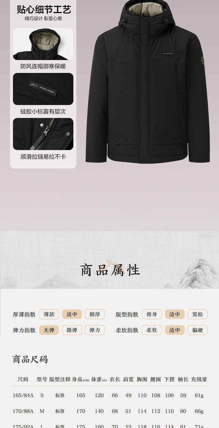 HLA海澜之家羽绒服男25山不在高系列连帽外套男冬季HWRAW4J043A