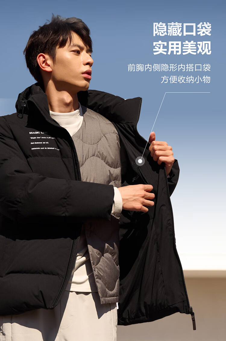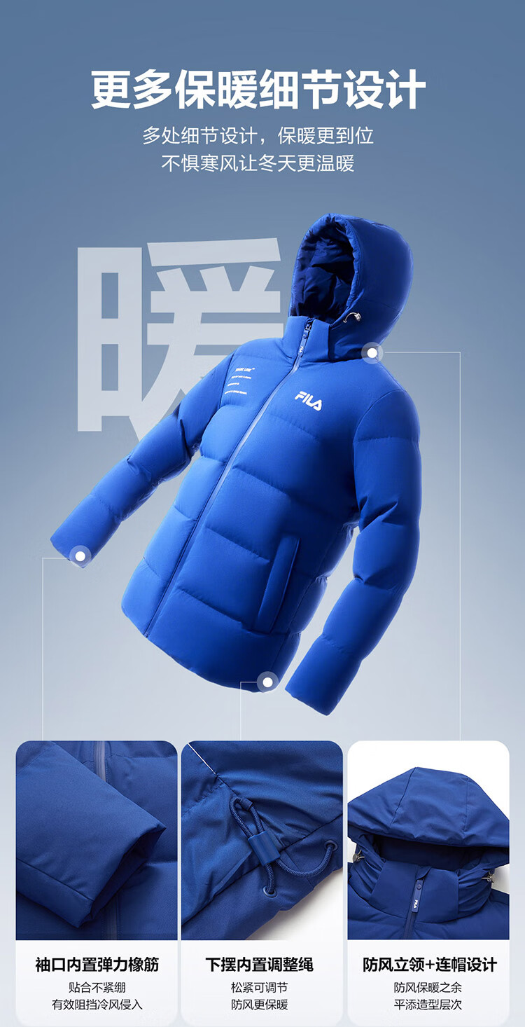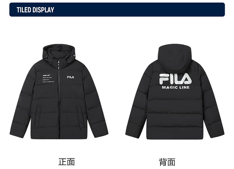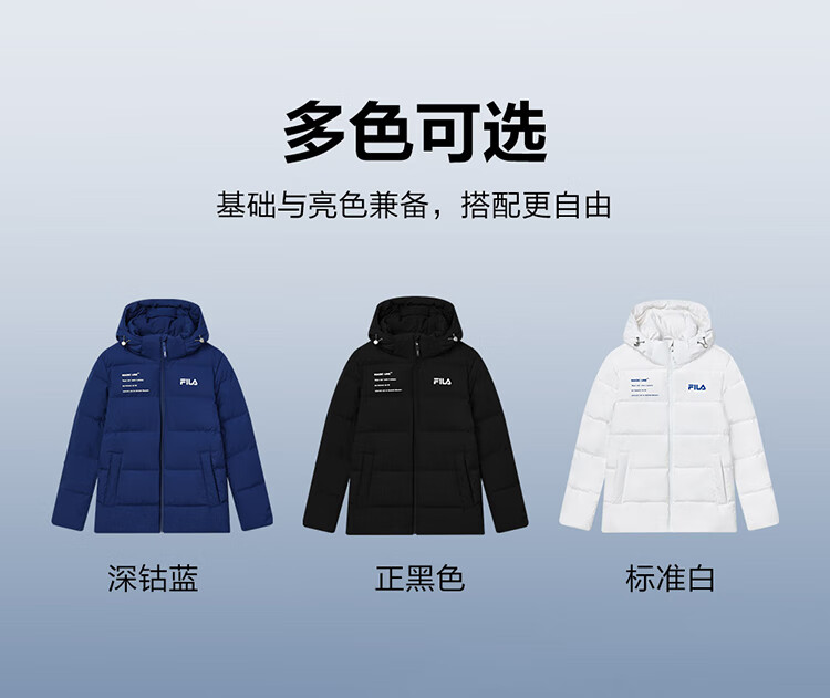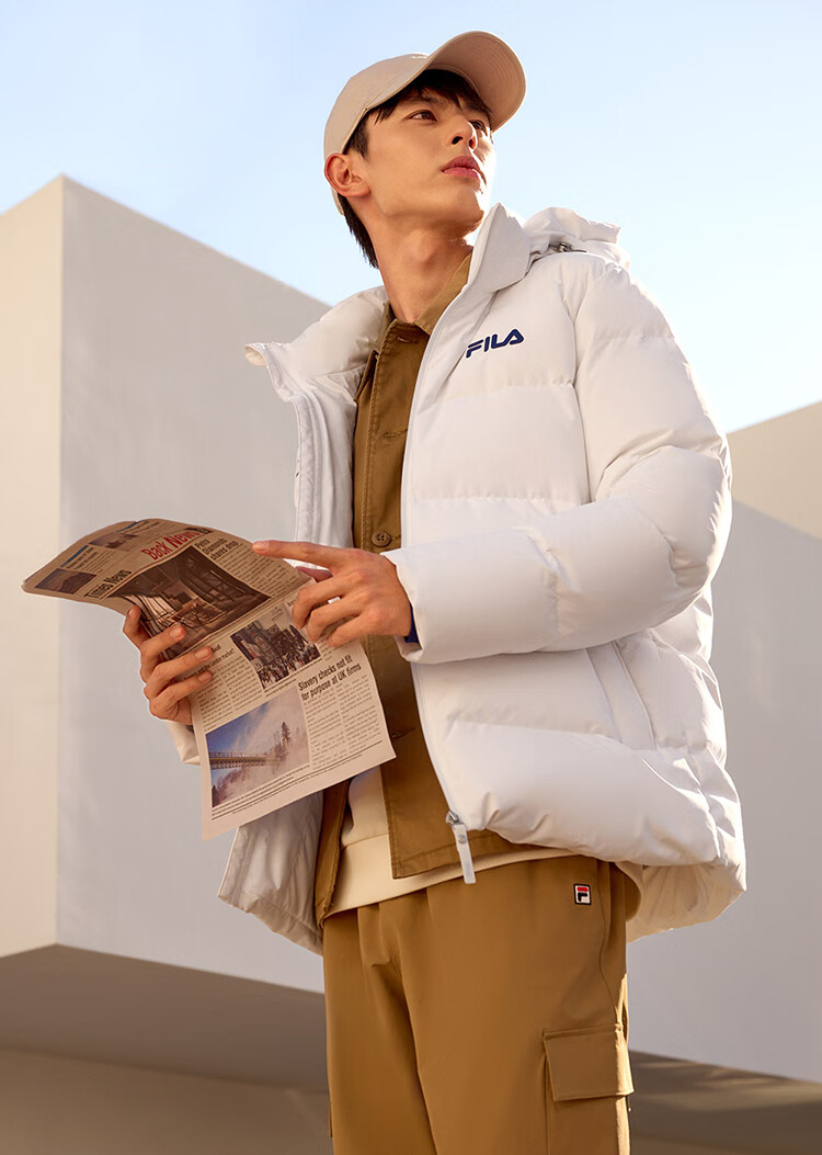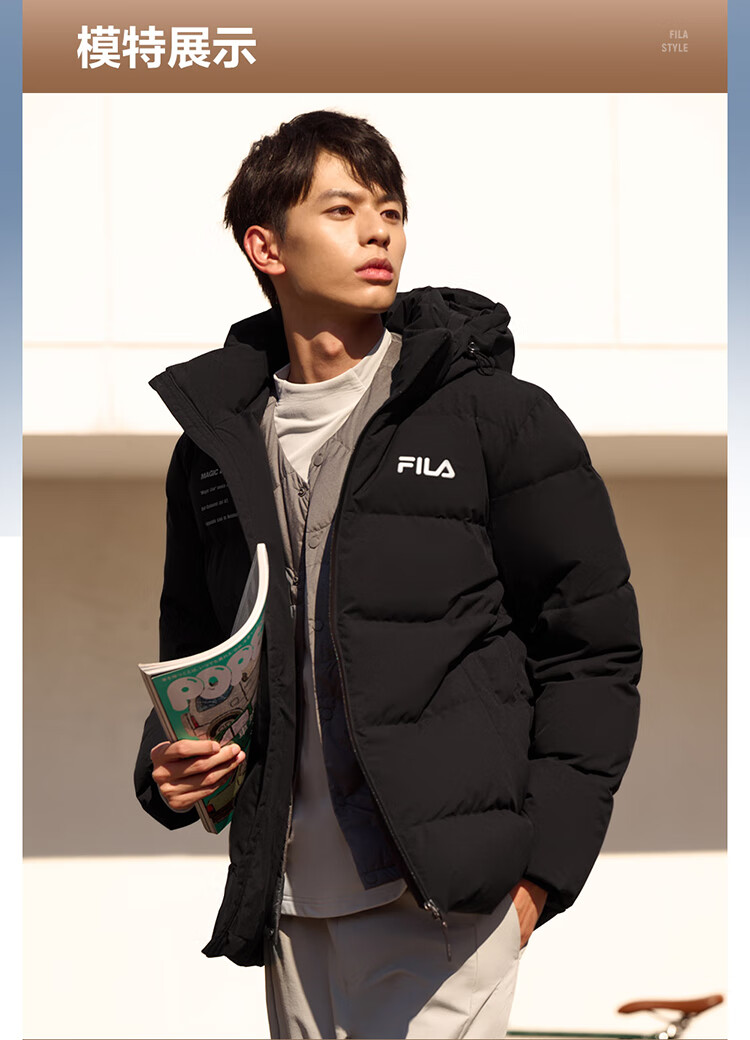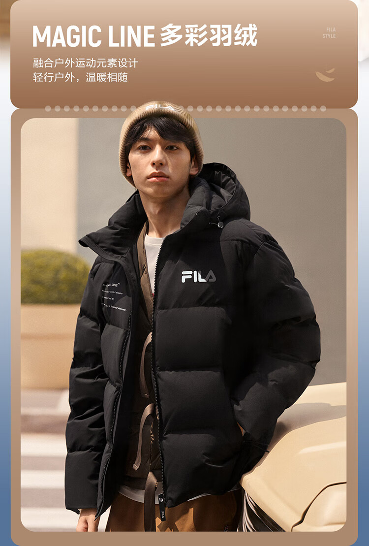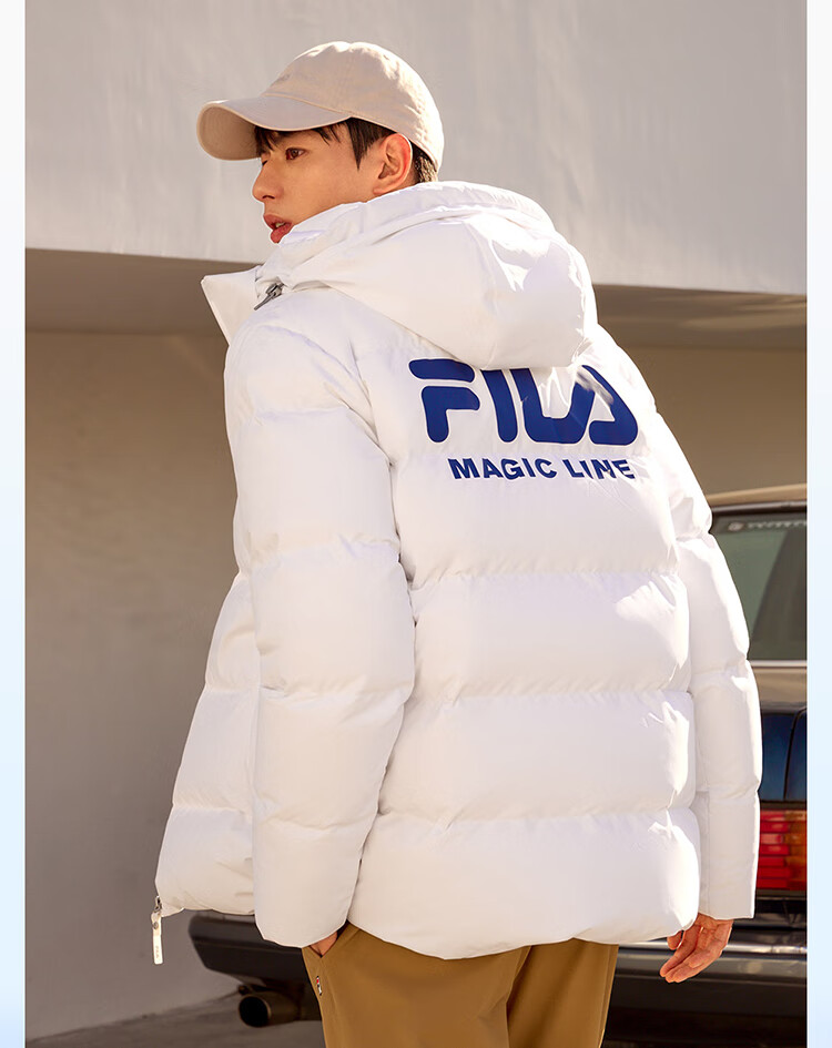 FILA official couple down jacket 2025 winter fashionable casual hooded top warm jacket for men and women