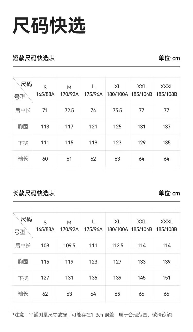 China (cm) 165 / 88-90 170 / 96-98 175 / 108-110 180 / 118-122 185 / 126-130