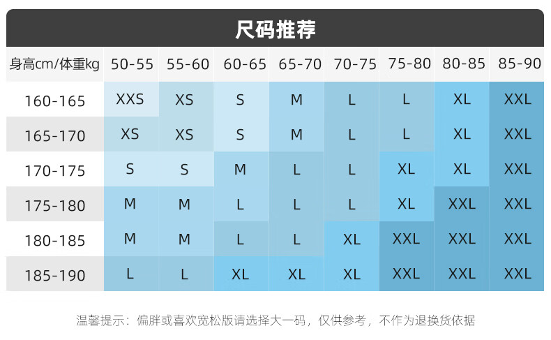 China (cm) 165 / 88-90 170 / 96-98 175 / 108-110 180 / 118-122 185 / 126-130