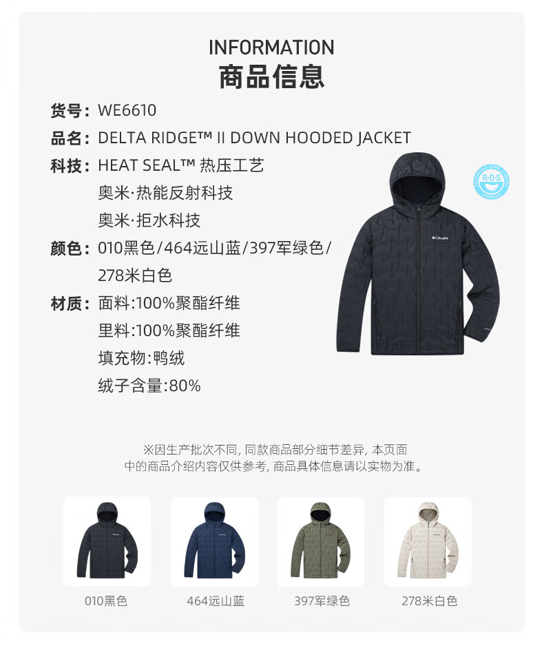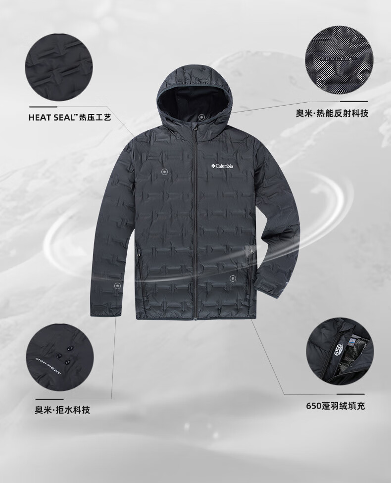 Columbia men's and women's seamless heat-pressed silver dot water-repellent 650 fluffy duck down warm down jacket WE6610 010 Asia-Pacific slim fit black XL (185/104A)