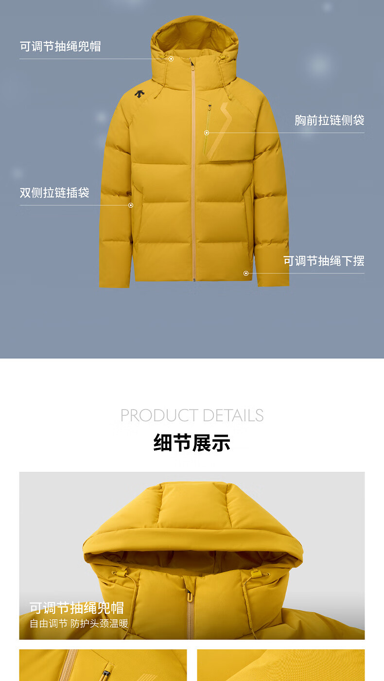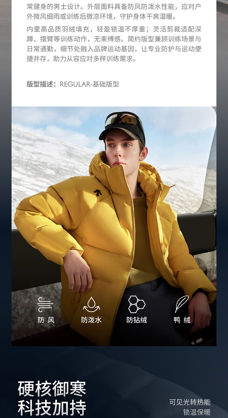 DESCENTE DESCENTE TRAINING series comprehensive training sports fitness men's down jacket BK-black XL (180/100A)