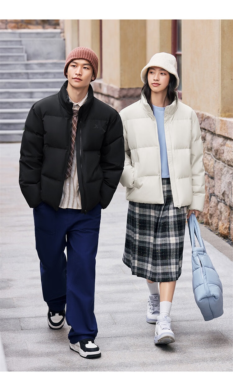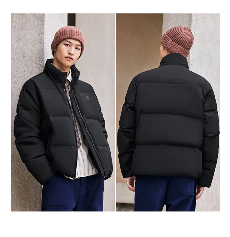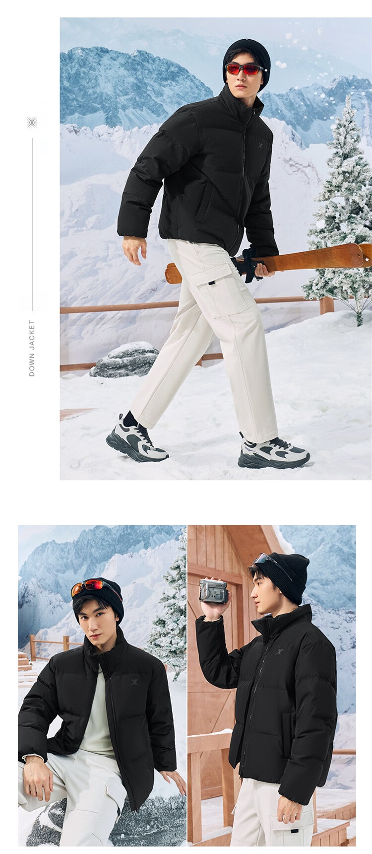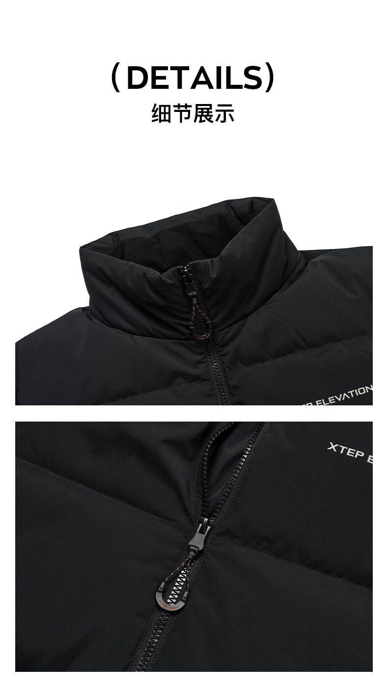 XTEP (XTEP) 80% velvet short down jacket for men and women, winter new warm and windproof thickened jacket for men, black-0115-80% velvet XL