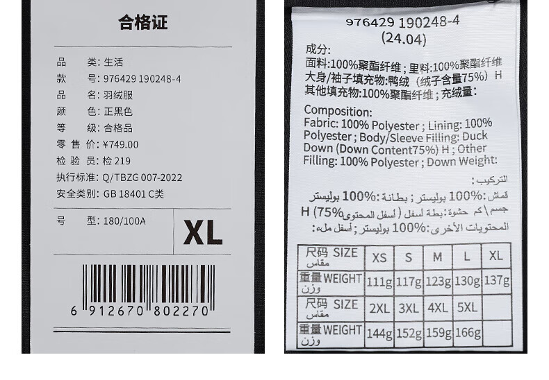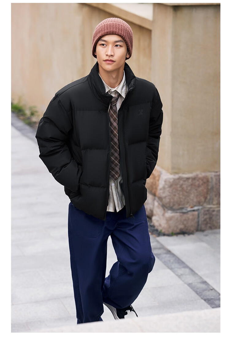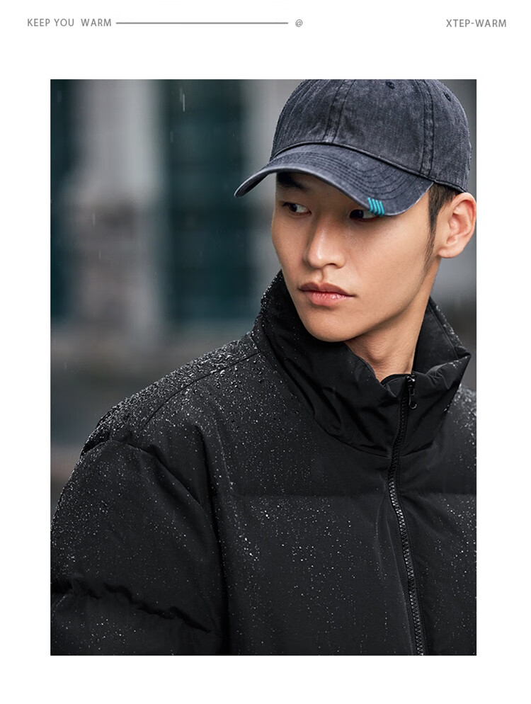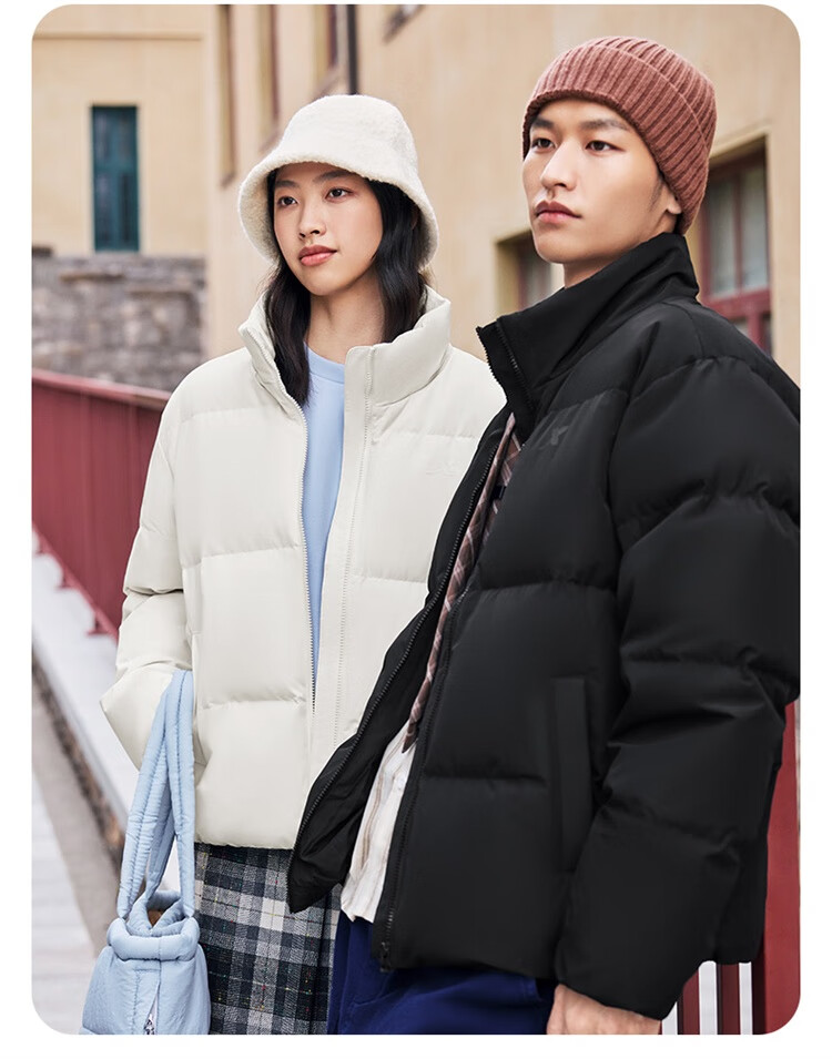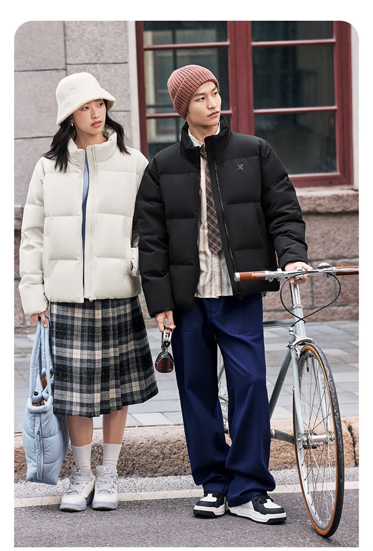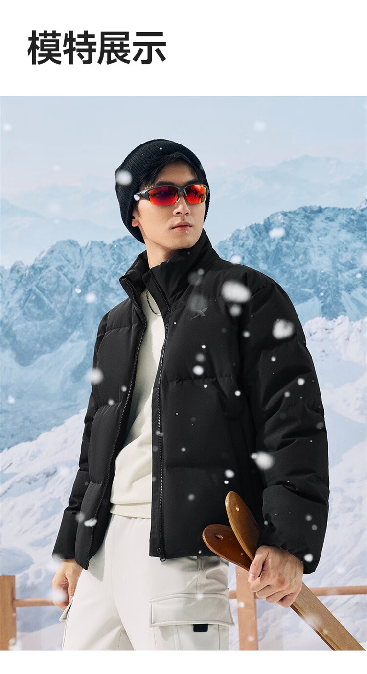 XTEP (XTEP) 80% velvet short down jacket for men and women, winter new warm and windproof thickened jacket for men, black-0115-80% velvet XL
