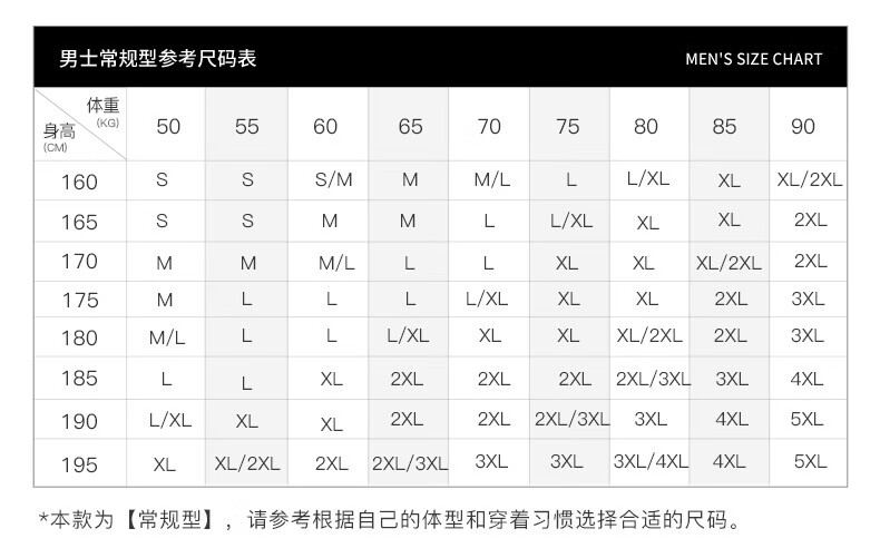 China (cm) 160-165/84-86 165-170 / 88-90 167-172 / 92-96 168-173 / 98-102 170-176 / 106-110