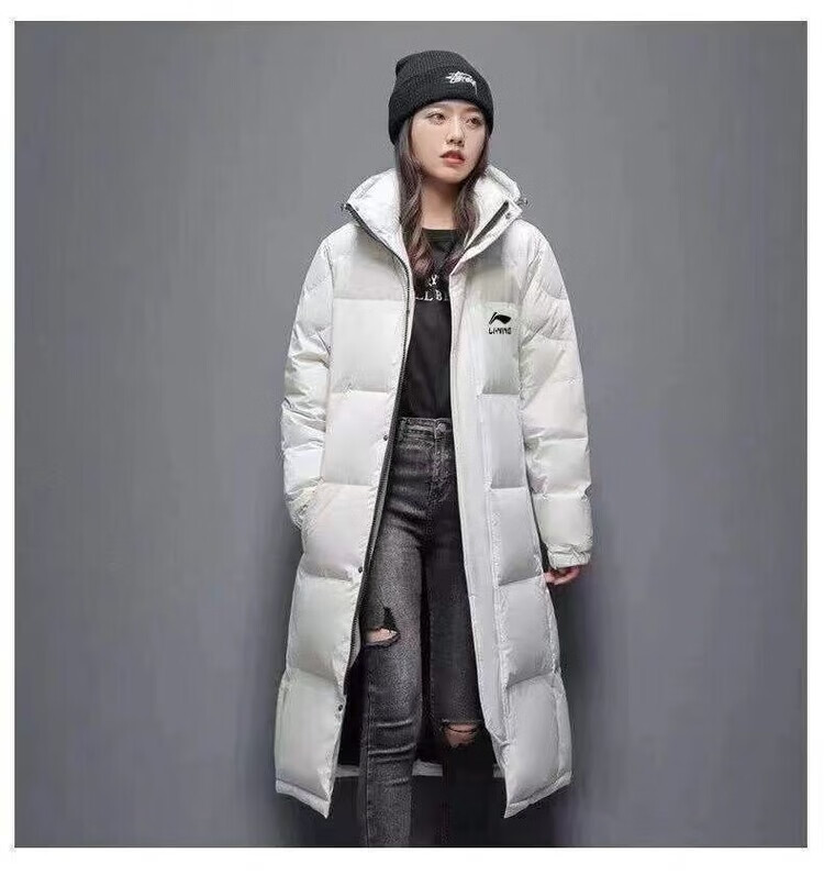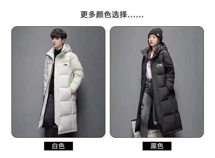 Li Ning 19902025 off-code couple down jacket, same style for men and women, long thickened winter duck down warm new coat over the knee #K9大LOGO-#Long white duck down black XL recommended weight 125-140