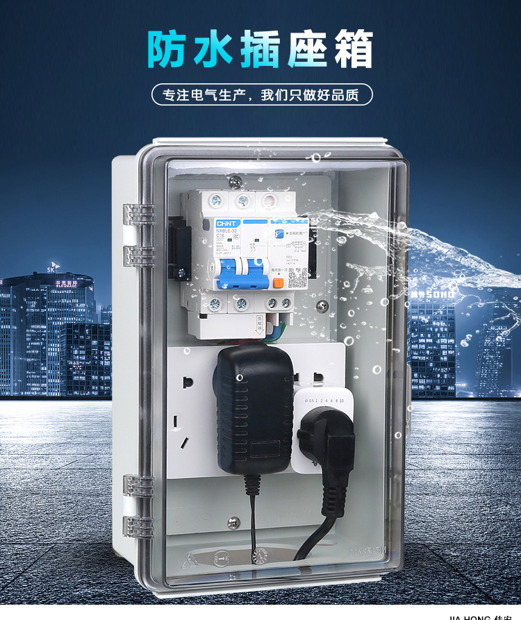 CZHOBO Outdoor outdoor rainproof, waterproof and leakage protection socket fully covered waterproof box power socket charging 1 10A socket 2 2-hole sockets (transparent cover)
