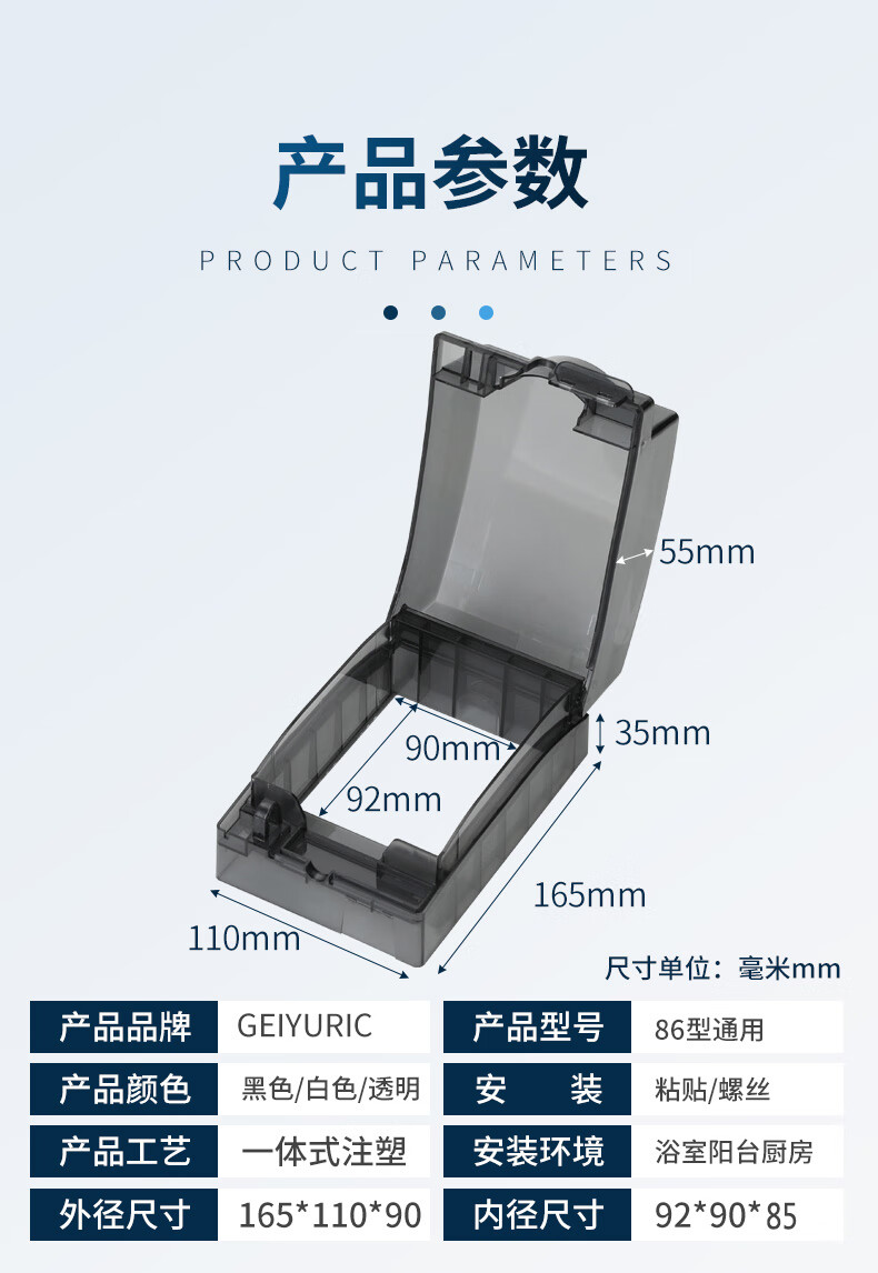 GEIYURIC Type 86 surface-mounted socket waterproof cover with heightening and lengthening paste bathroom leakage switch anti-splash box water heater protective cover surface-mounted paste model (transparent)