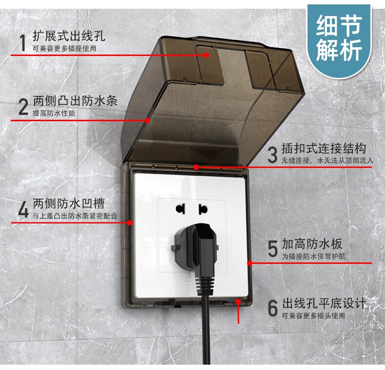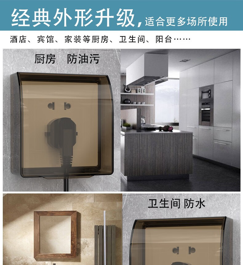 7M International Electrician Type 86 Socket Waterproof Box Self-adhesive Socket Power Protective Cover Splash-proof Box Bathroom Toilet Switch Waterproof Cover Type 86 Adhesive Model (Transparent)