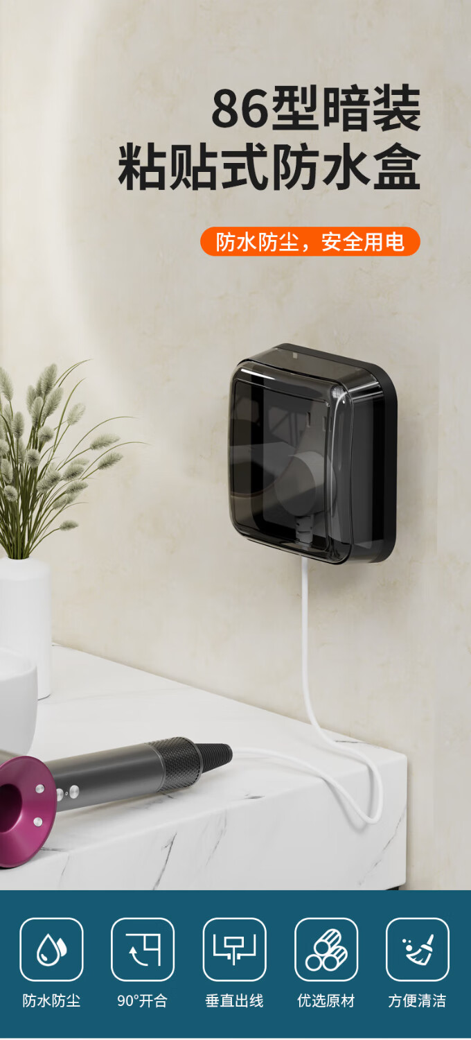 International electrician type 86 socket waterproof box self-adhesive switching power supply protective cover splash-proof box bathroom toilet socket waterproof cover white transparent one waterproof box