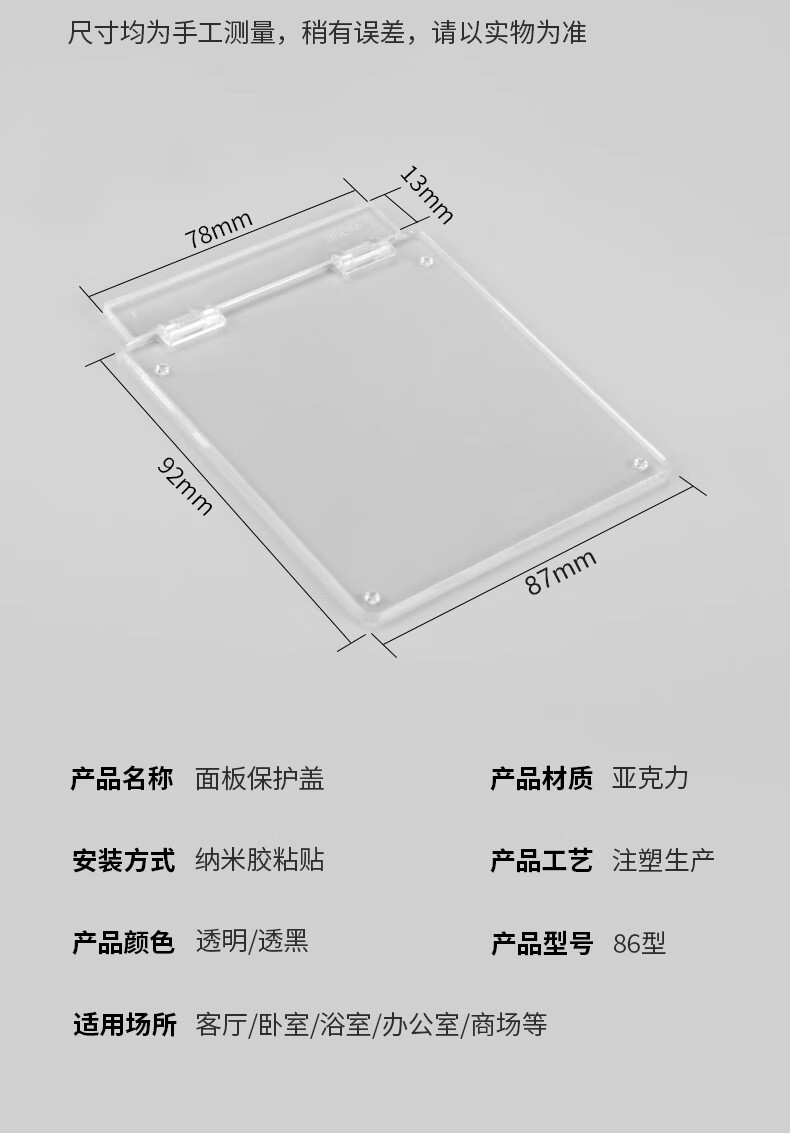 Baililang 86 type socket protection cover dust-proof and splash-proof panel shield cover power socket oil-proof plate splash-proof water cover transparent black