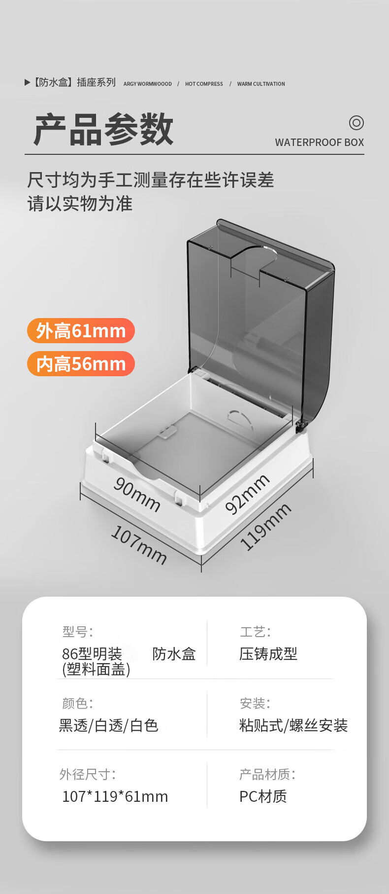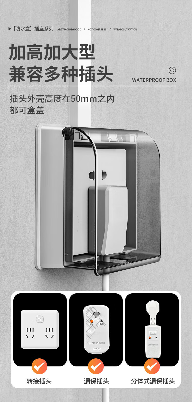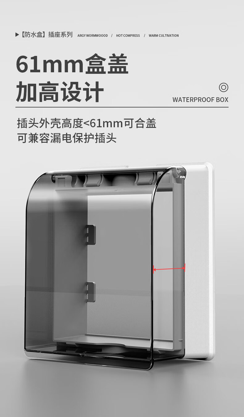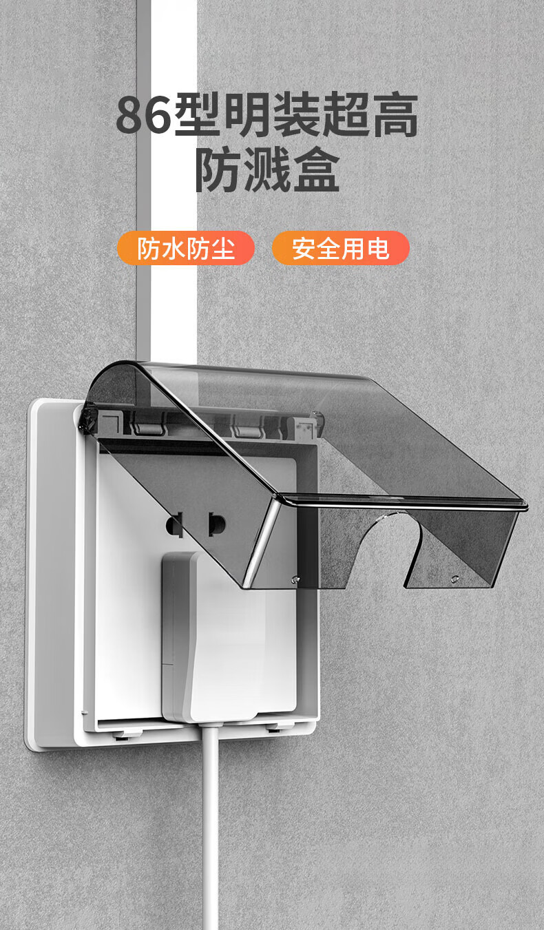 Bull (BULL) socket surface-mounted heightening waterproof box 86 type bathroom open-wire switch socket protective cover cover leakage plug splash-proof box heightening and lengthening (transparent) + Bull five-hole socket