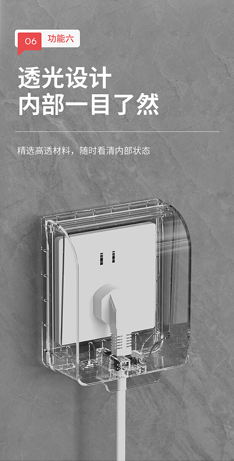 International Electrician Type 86 socket waterproof cover bathroom IP55 waterproof box surface-mounted self-adhesive splash-proof box bathroom socket protective cover IP55 upgraded adhesive two-position waterproof box-black transparent