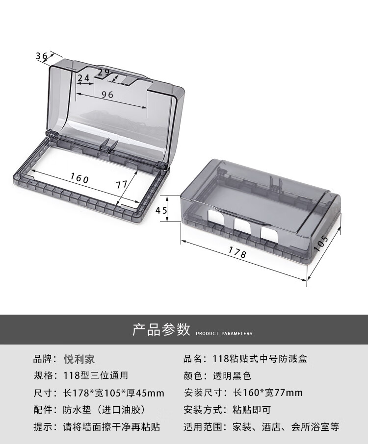 9-hole socket with waterproof box 118 type three-position nine-hole 15-hole socket waterproof cover adhesive switch protection cover bath (adhesive version) white without socket (adhesive version)