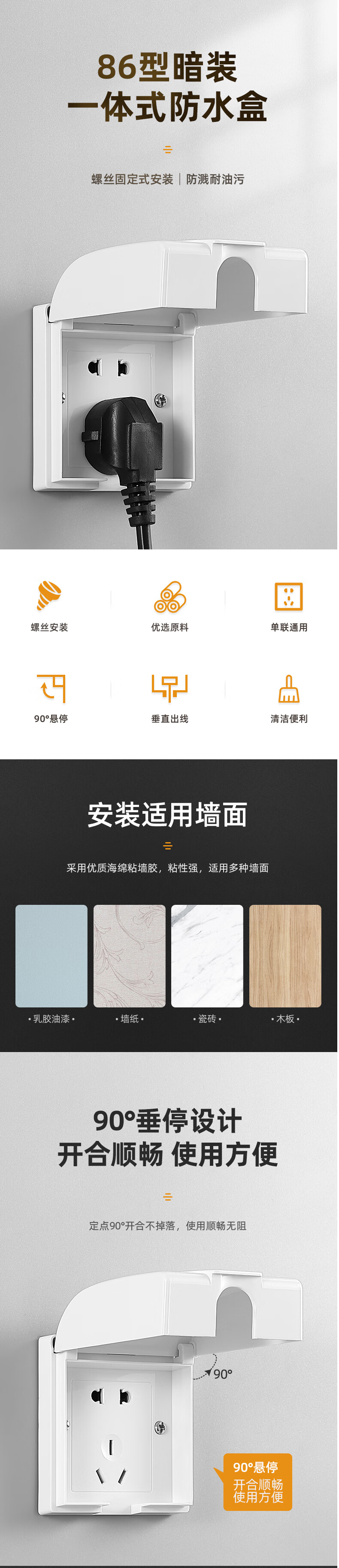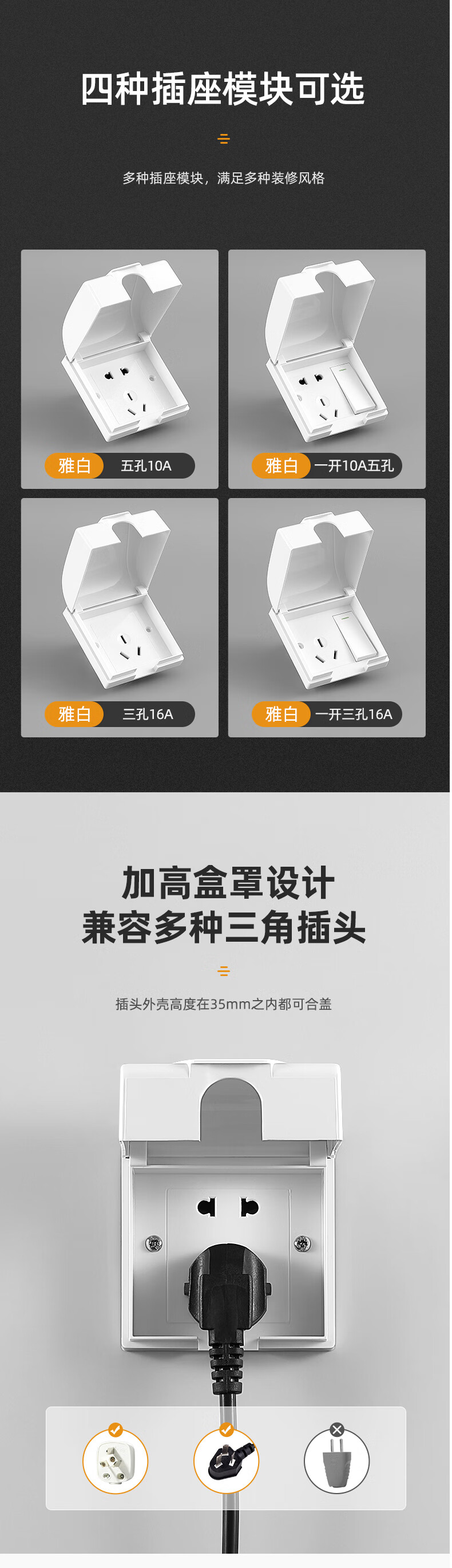 Zhengyi Niu Qi Ying store-type outdoor concealed socket waterproof box integrated protective cover open wire one-open five-hole switch Bull concealed elegant white waterproof five-hole 10A socket