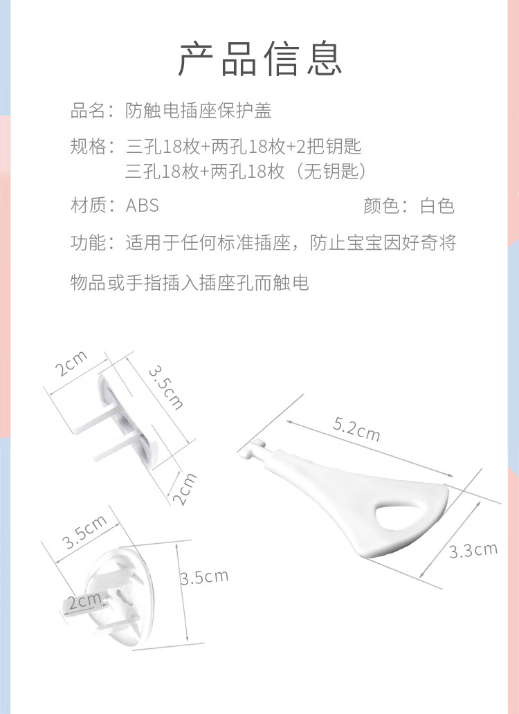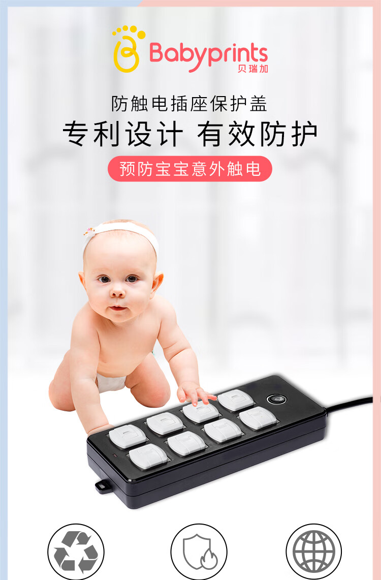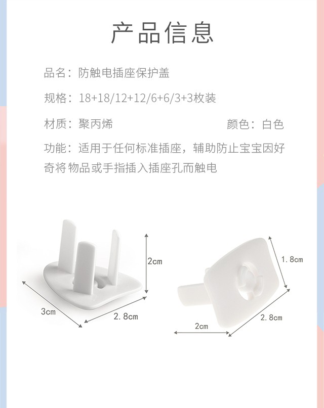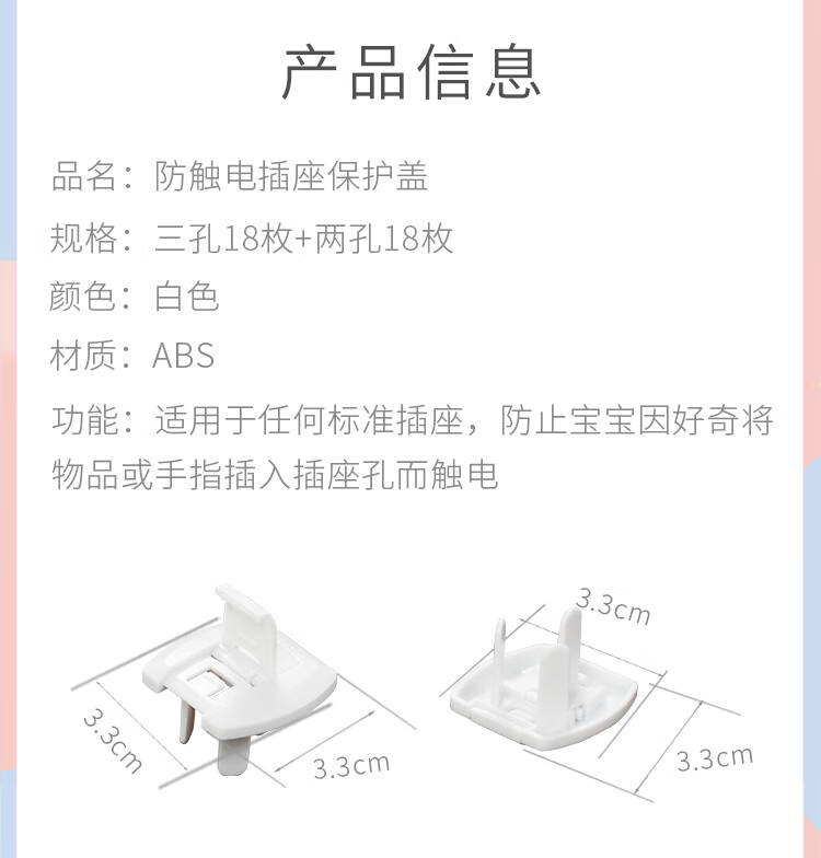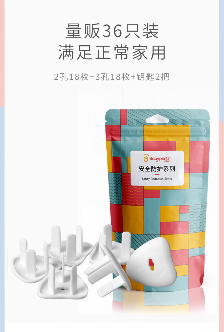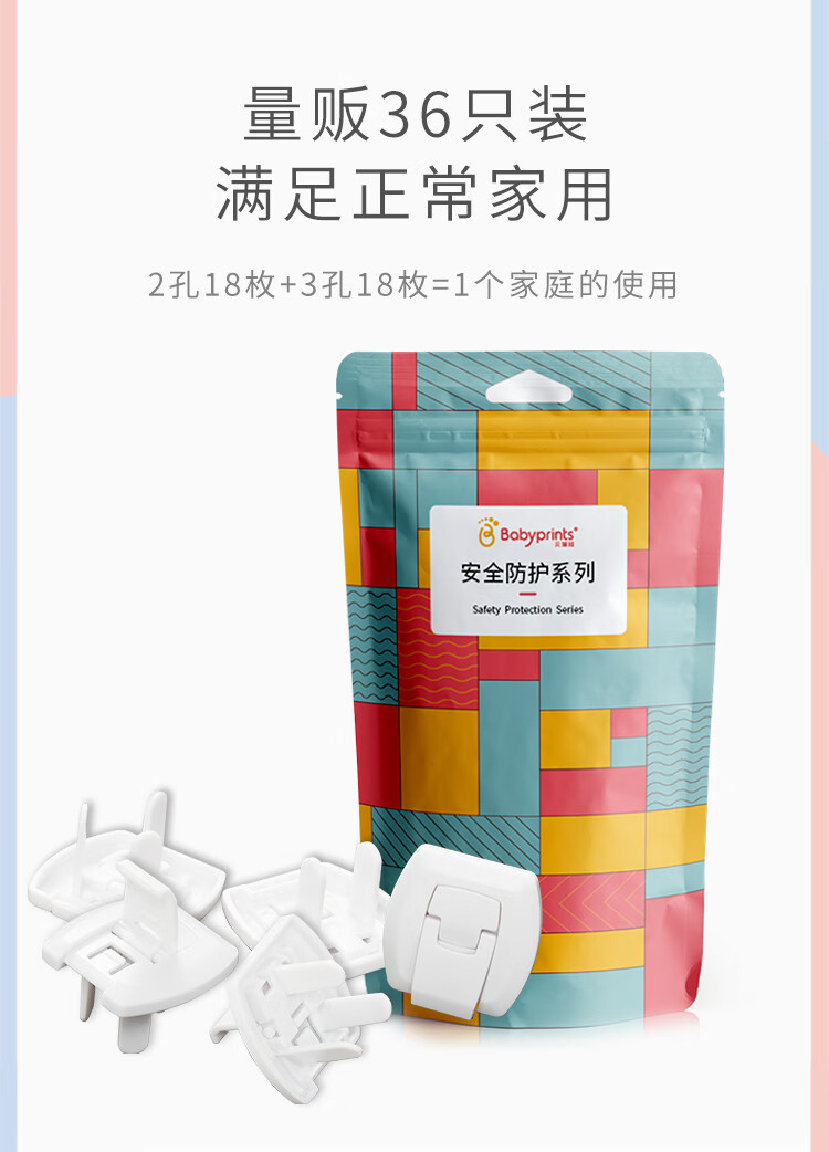 Babyprints children's anti-shock socket protective cover power jack safety plug protective cover plug socket plug integrated socket protective cover two-hole 18-pack + three-hole 18-pack