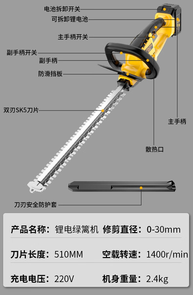 Elektrische Doppelklingen-Heckenschere für Hausgarten, Teebaum-Heckenschere, Lithium-Batterie, wiederaufladbar, Multifunktions-Trimmer, benötigt eine einzelne Klinge/Machete. Bitte wenden Sie sich an den Kundendienst