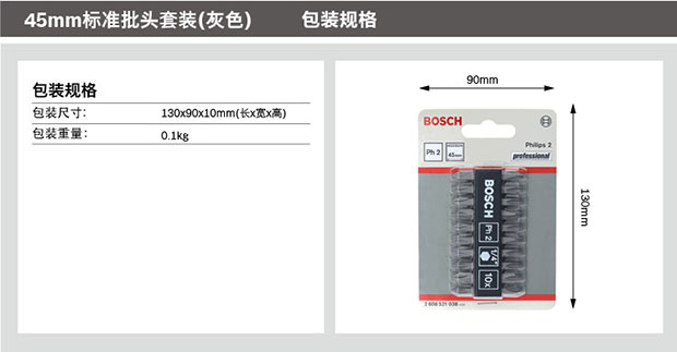 BOSCH博世PH2双向批头套装(10支装)S2钢材 长度45mm更高硬度丰富型号