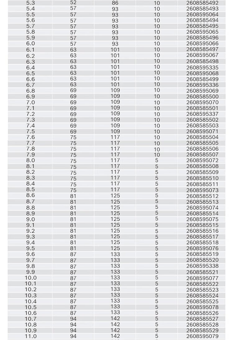 76.2 81.3 86.4 91.5 96.5 101.6 106.7 112 117 122 127 132 137 142