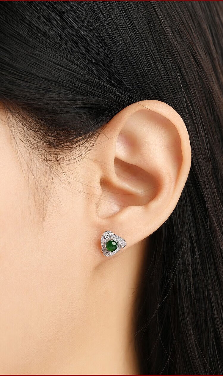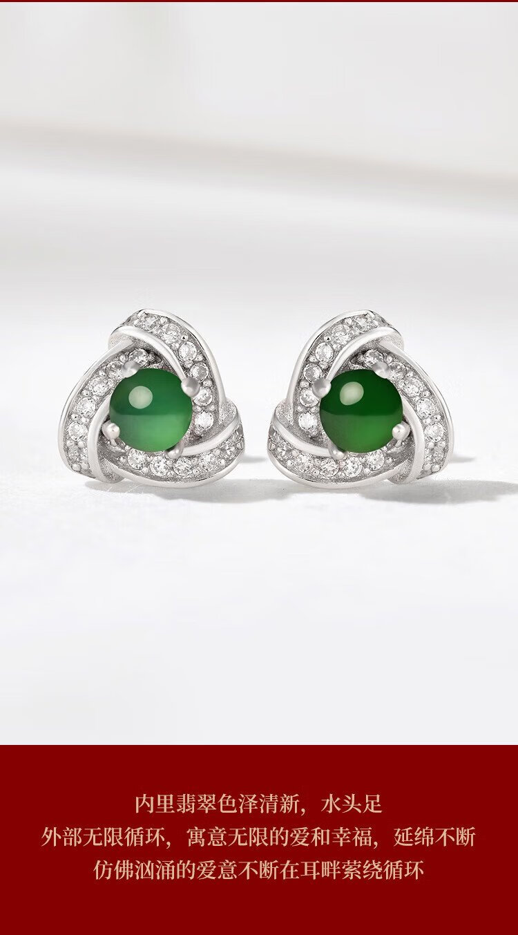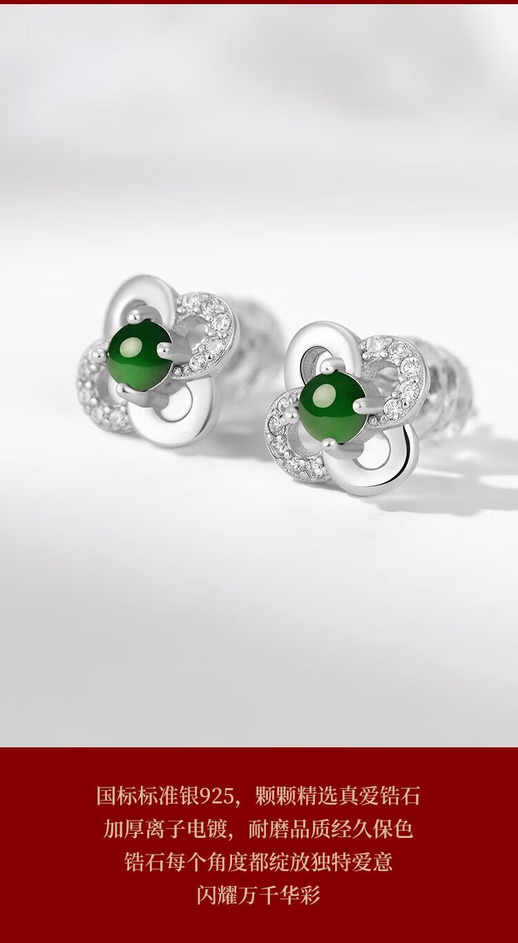 Phoenix Jewelry Jade Earrings Women's Silver Inlaid Natural Jade Jade Earrings Practical Birthday Gift for Mom and Girlfriend