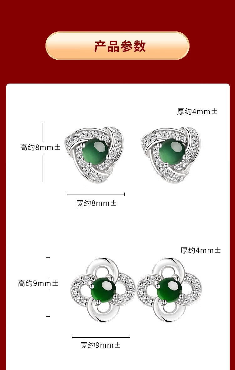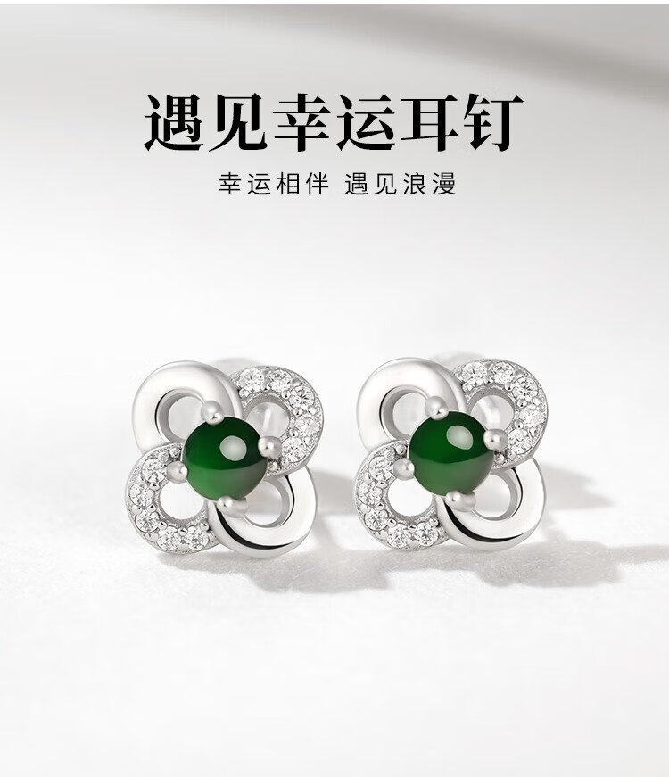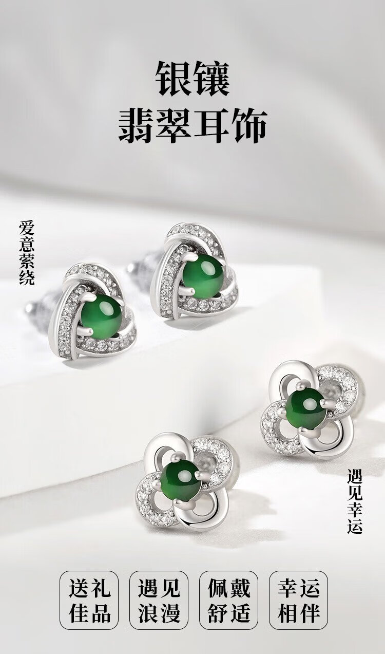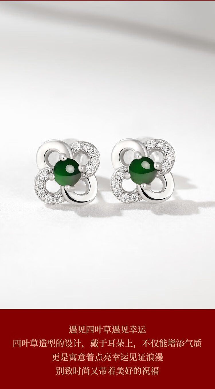 Phoenix Jewelry Jade Earrings Women's Silver Inlaid Natural Jade Jade Earrings Practical Birthday Gift for Mom and Girlfriend