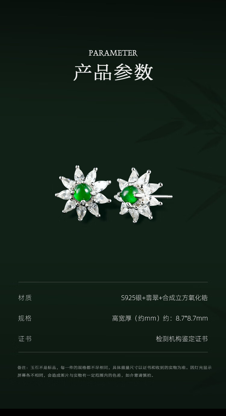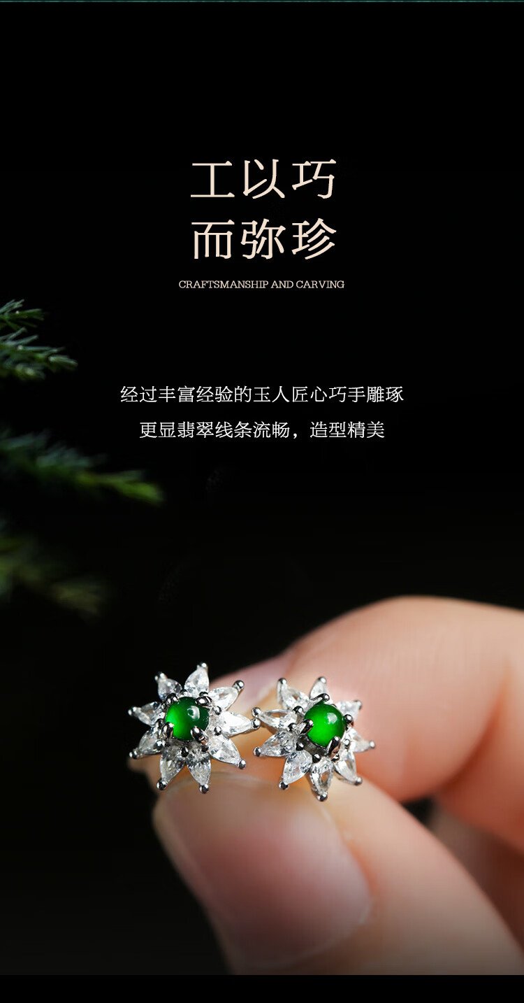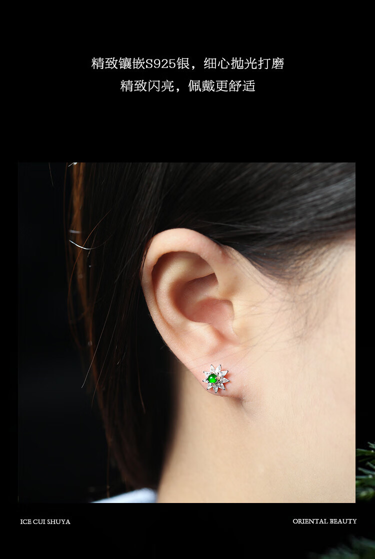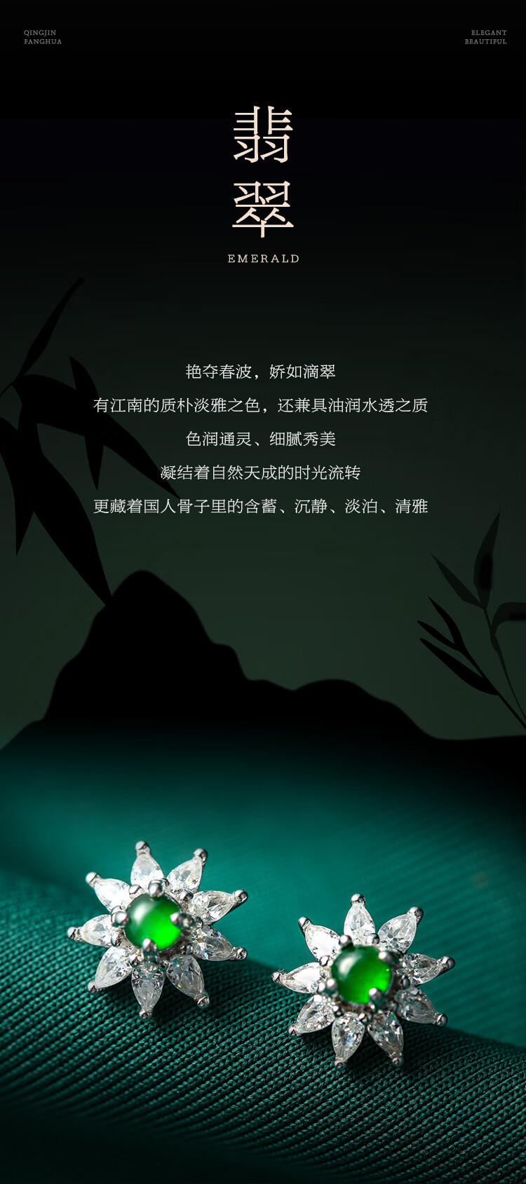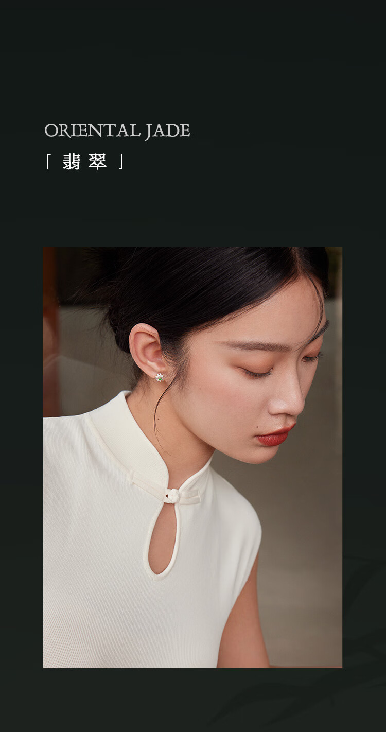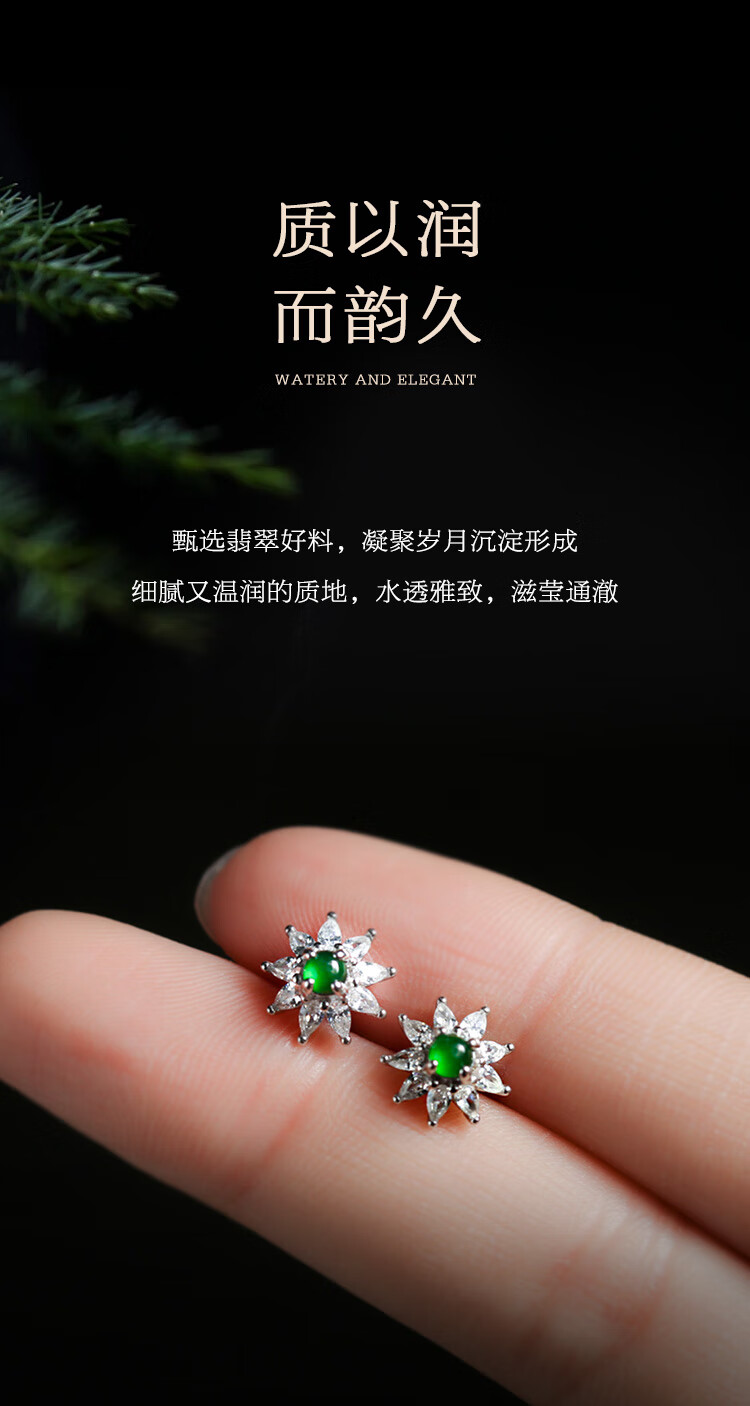 Oriental Jade Exquisite Niche Versatile S925 Silver Inlaid Imperial Green Jade Earrings Stud Earrings for Women Birthday Gifts for Women