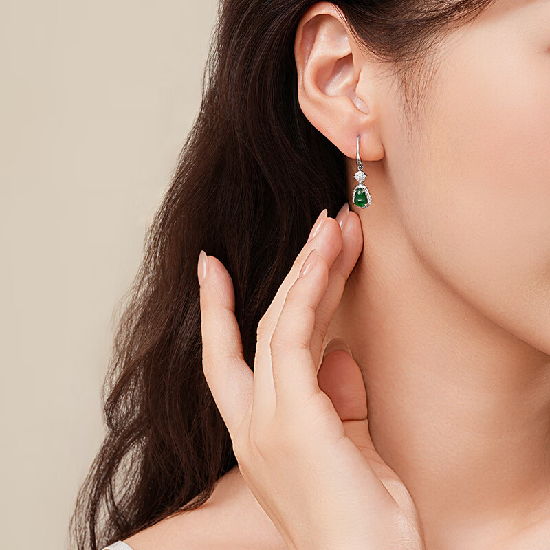 Chao Acer S925 Silver Jade Earrings for Women as a Gift for Mom, Chasing Light EES42700005 One Pair Birthday