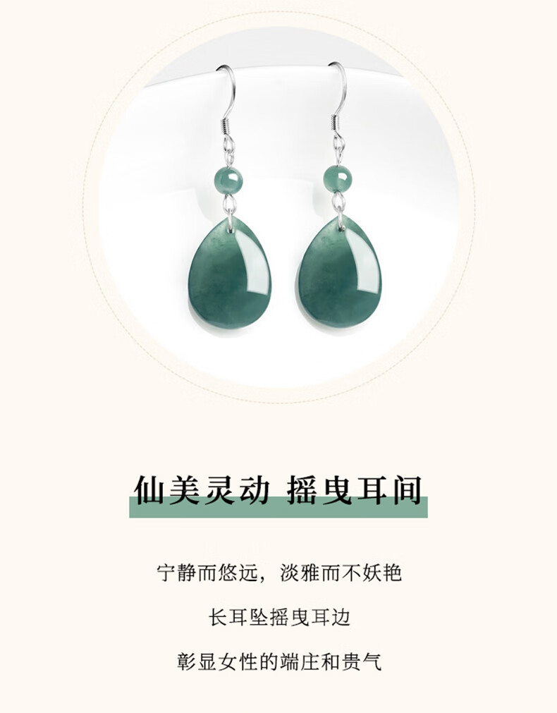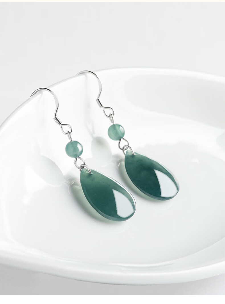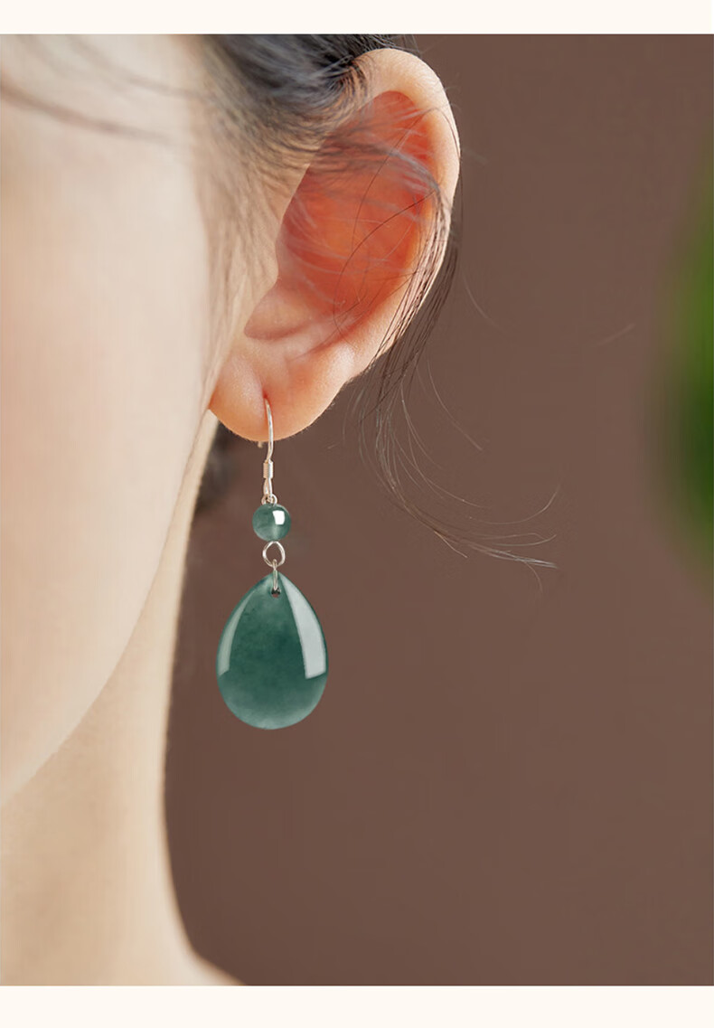 Jianlu Jade A-grade silver earrings for women, elegant high-end jade earrings, mother’s birthday gift for wife, mother, wife