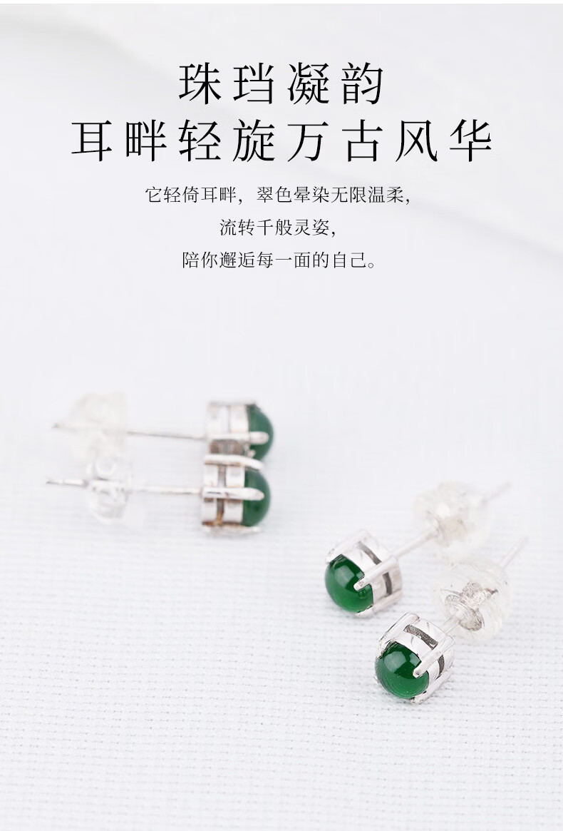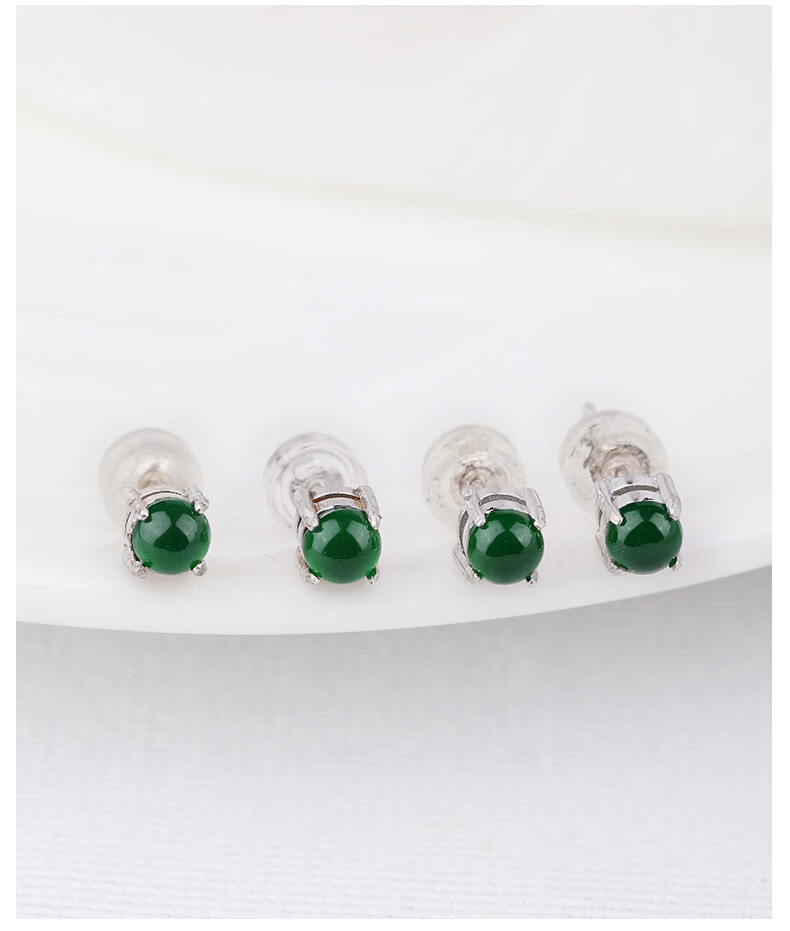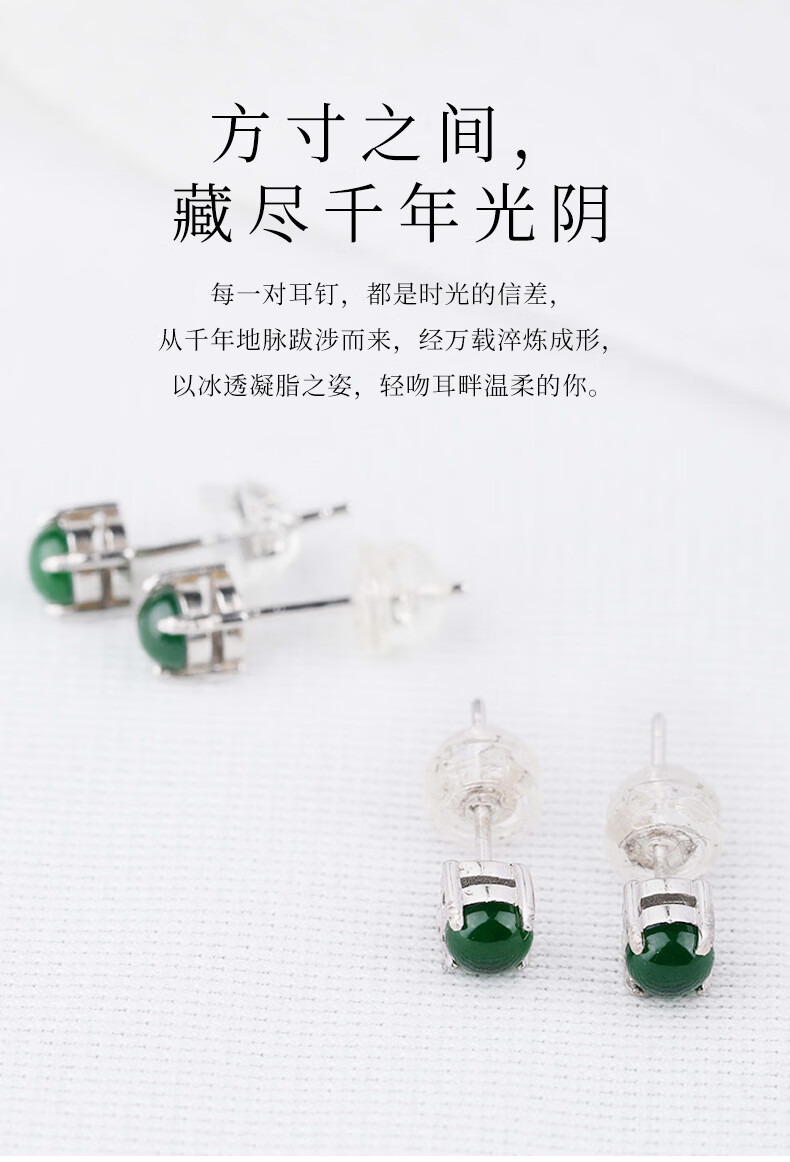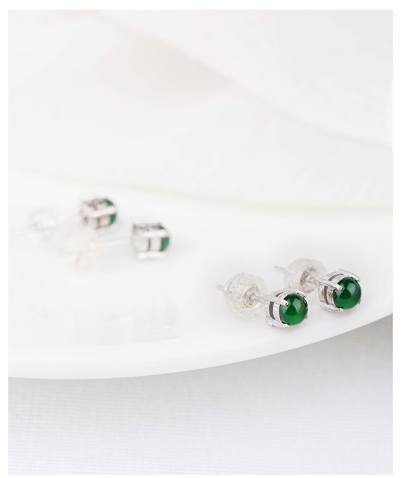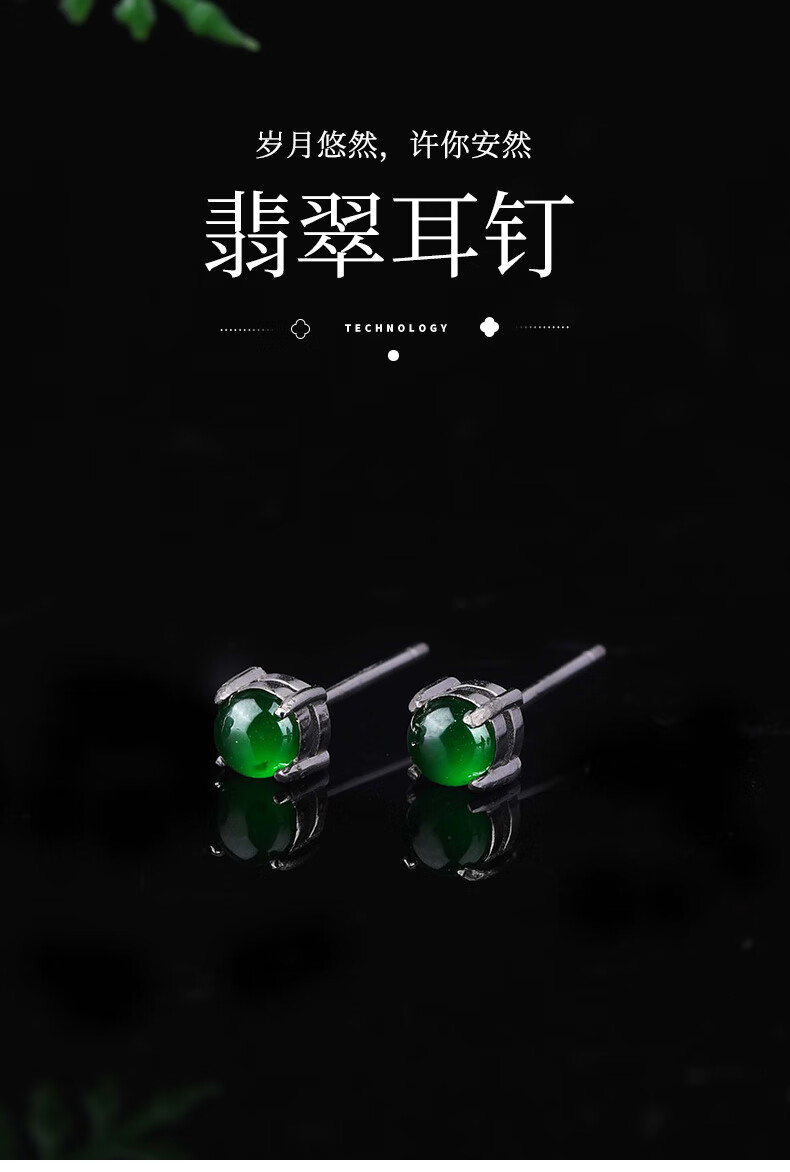 XIANGZHENFU JEWELRY 925 silver inlaid jade cabochon earrings full of green jade earrings ice jade earrings for girlfriends and elders