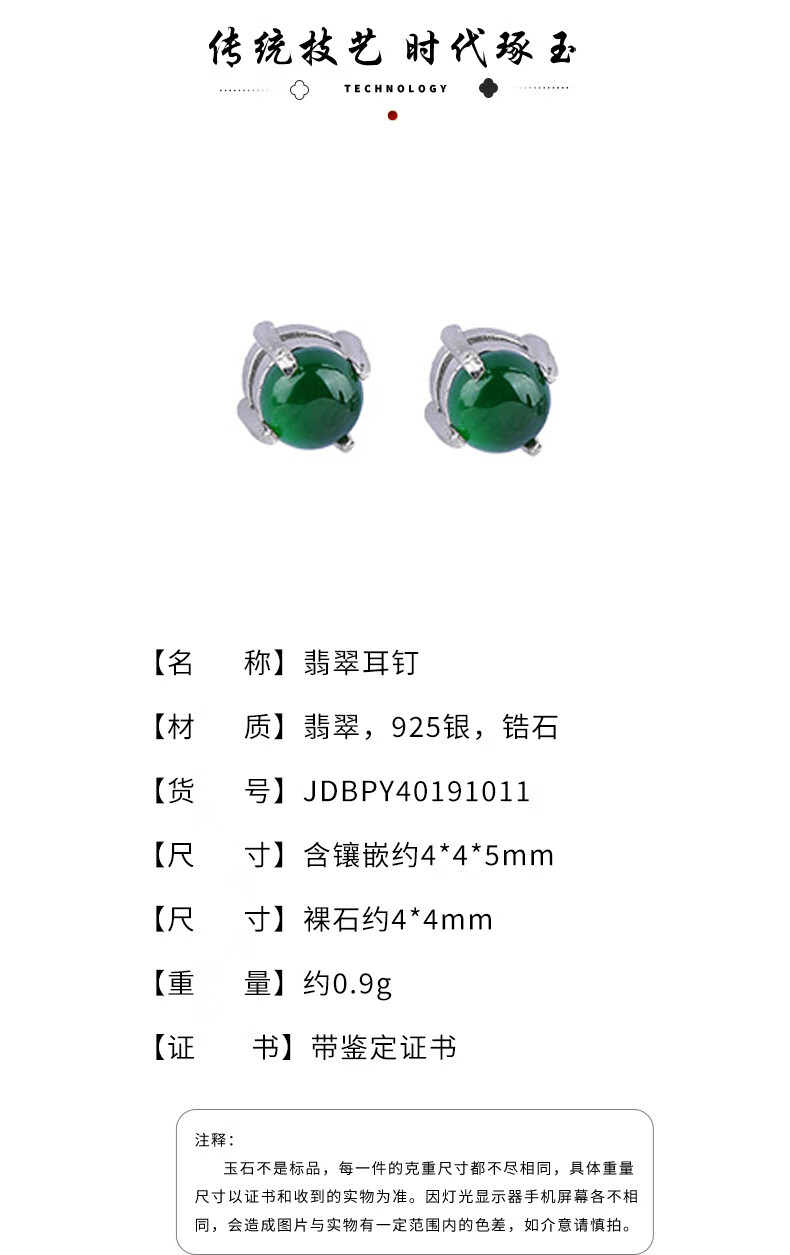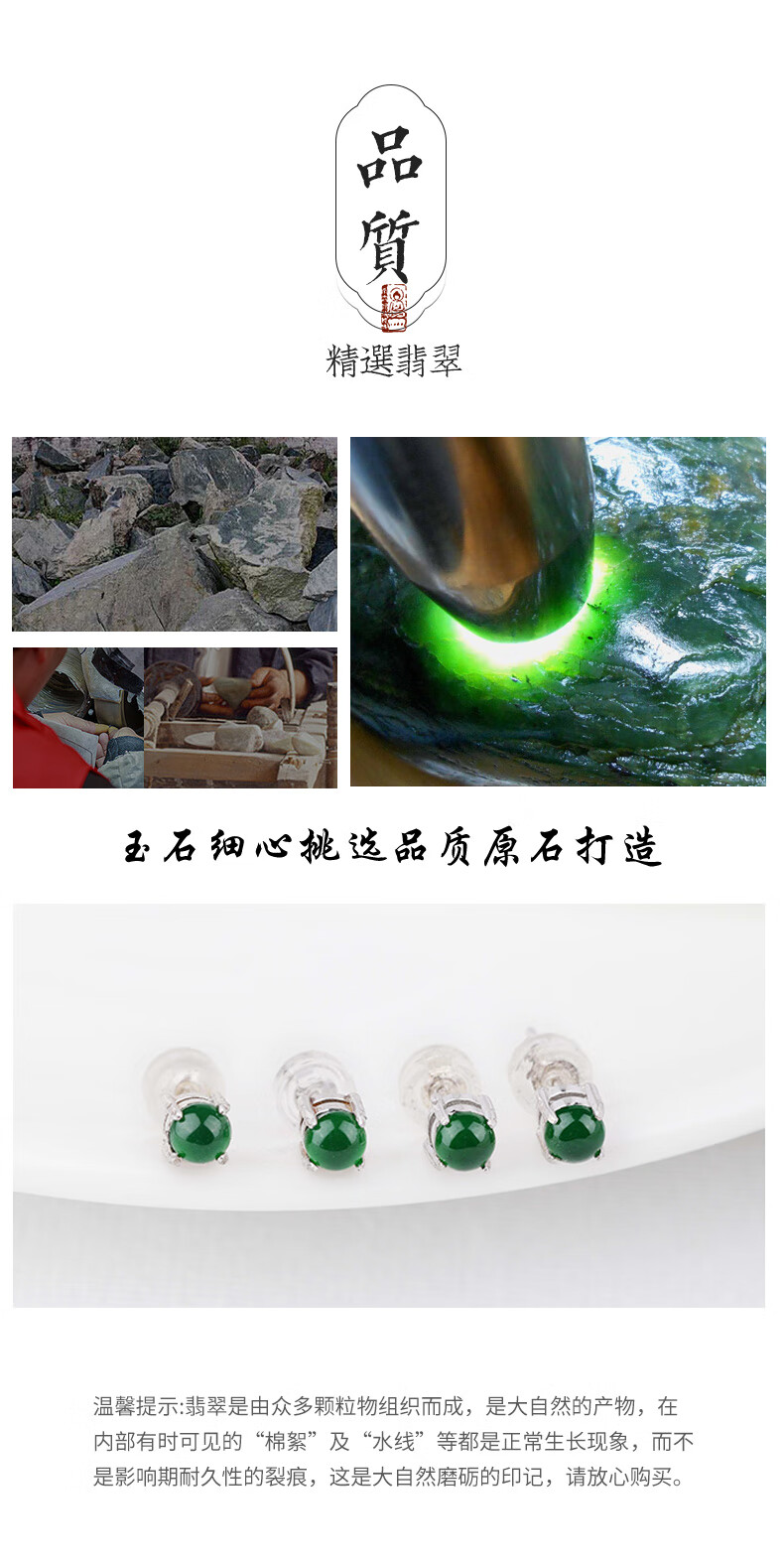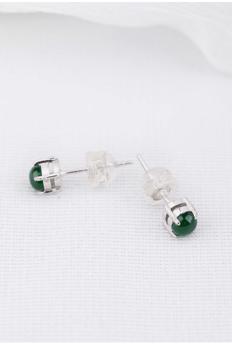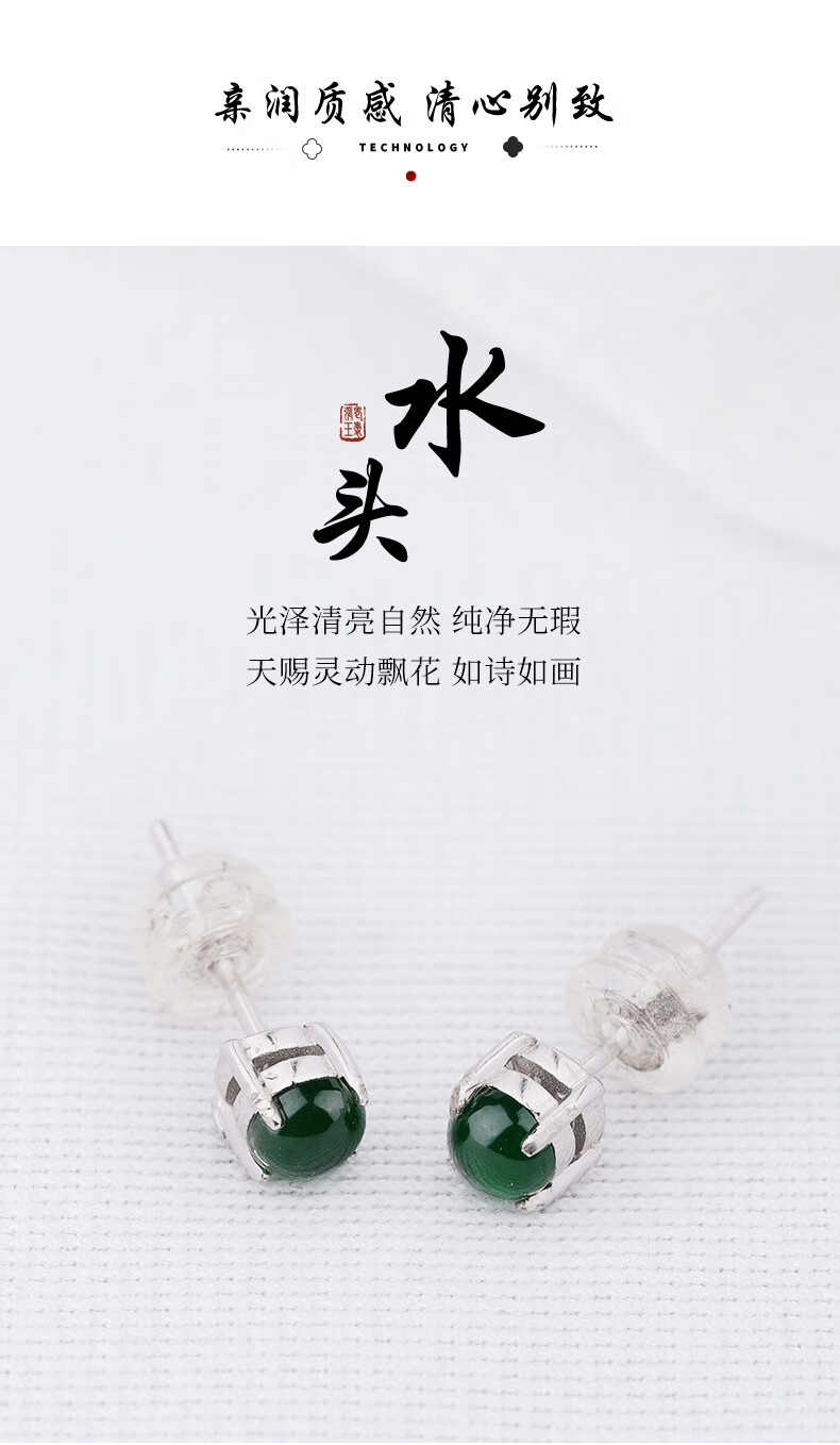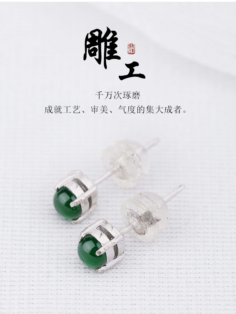 XIANGZHENFU JEWELRY 925 silver inlaid jade cabochon earrings full of green jade earrings ice jade earrings for girlfriends and elders