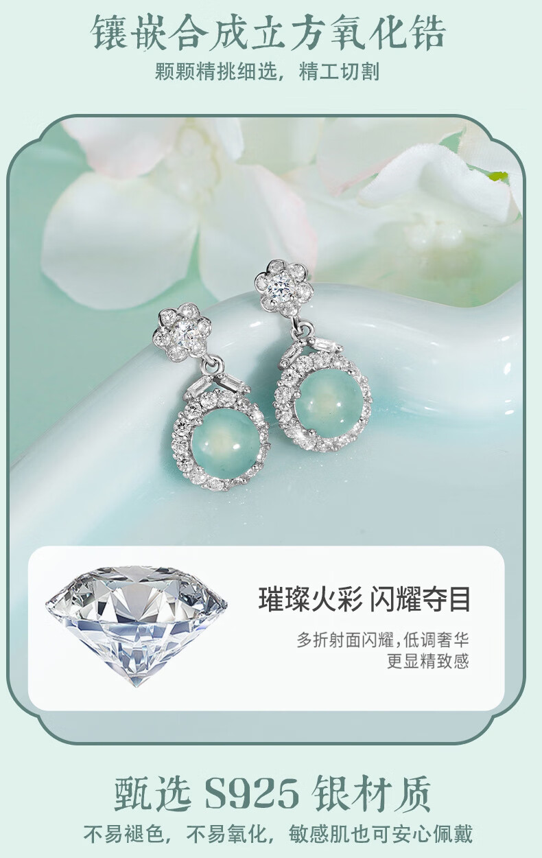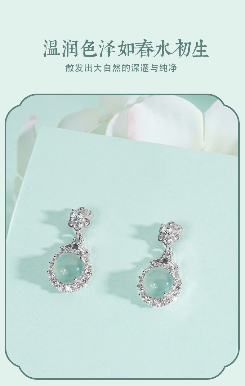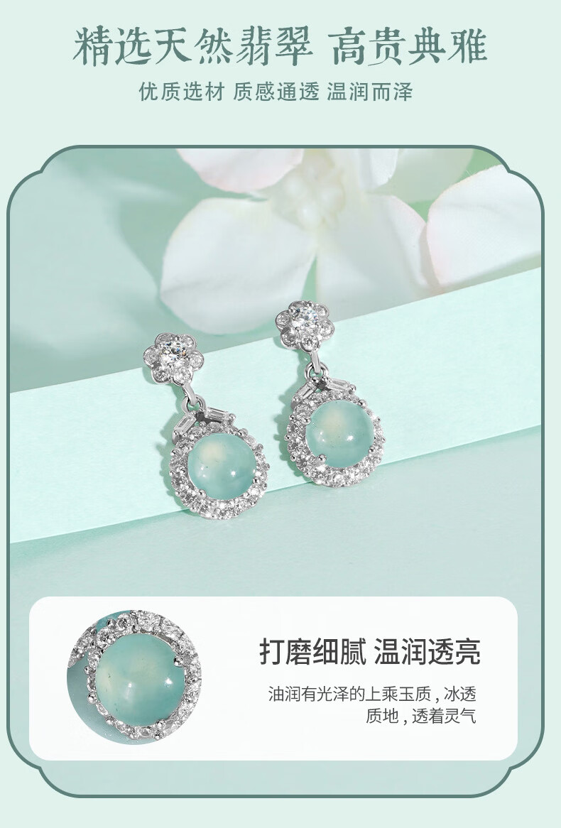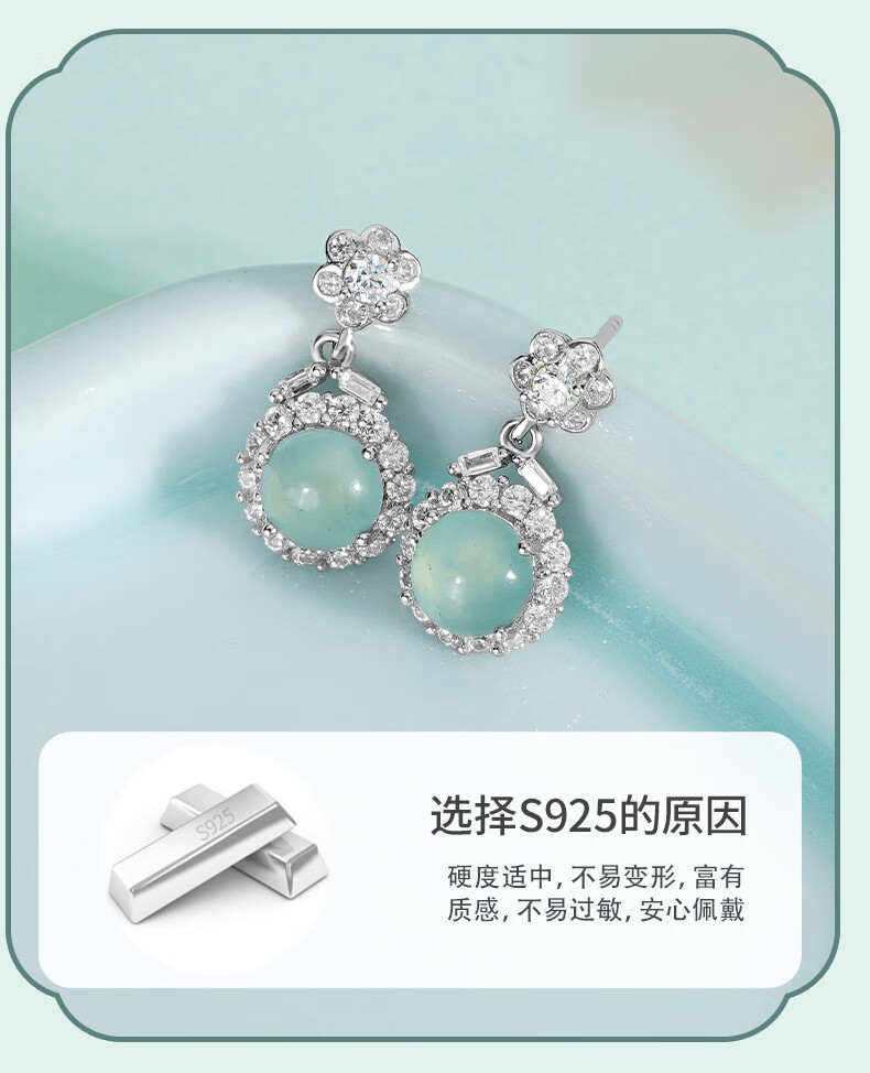 Jianlu natural jade a-grade silver earrings for women, temperament, high-end jade earrings, jewelry, mother's birthday gift for mom