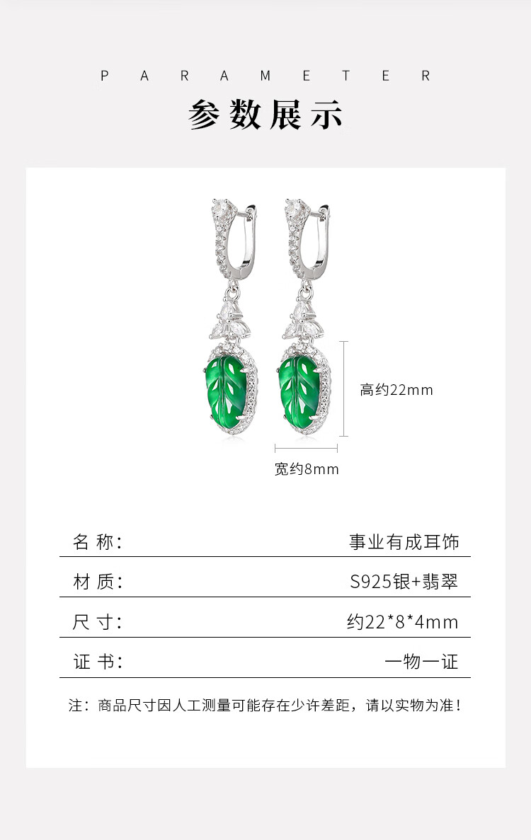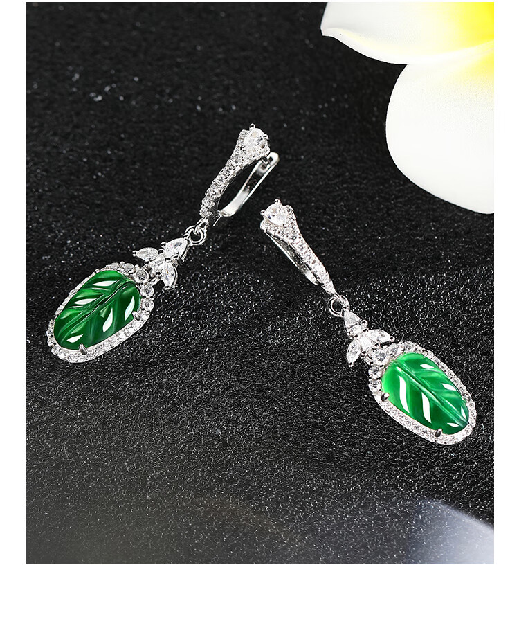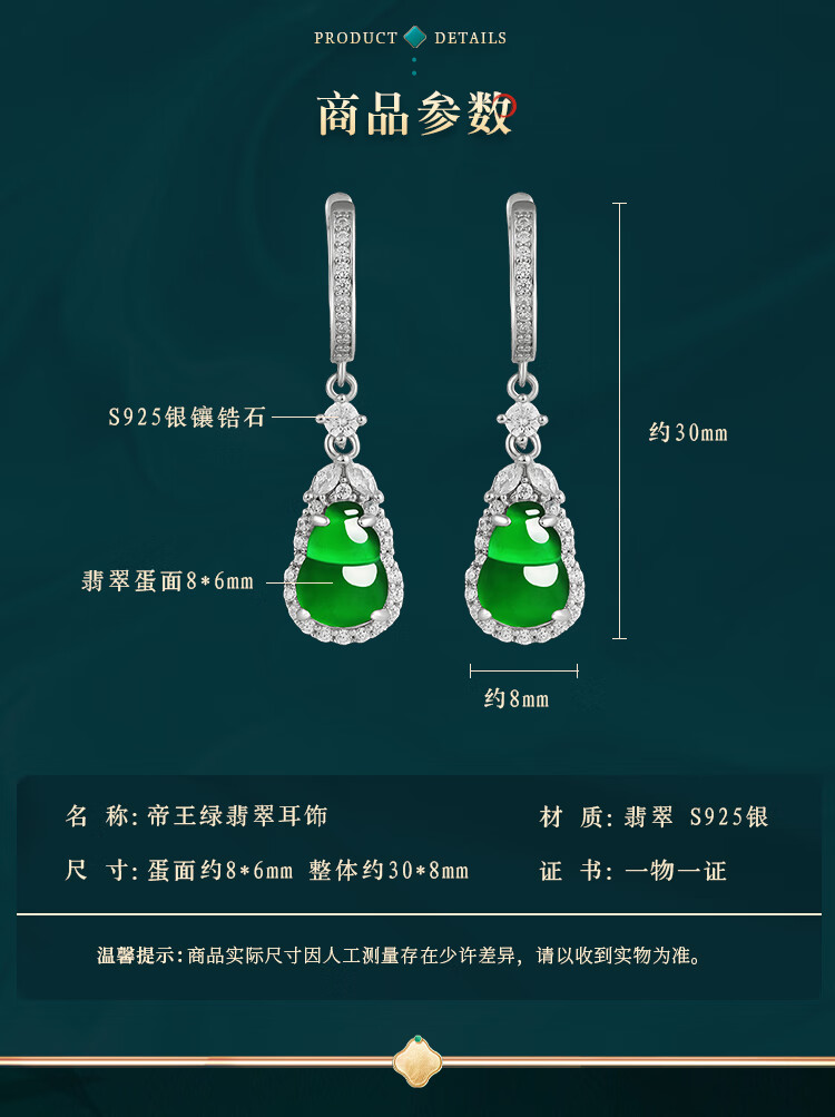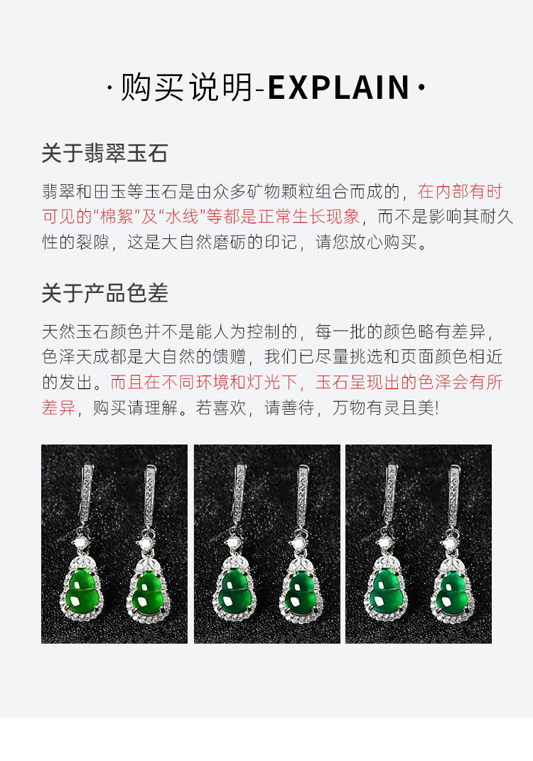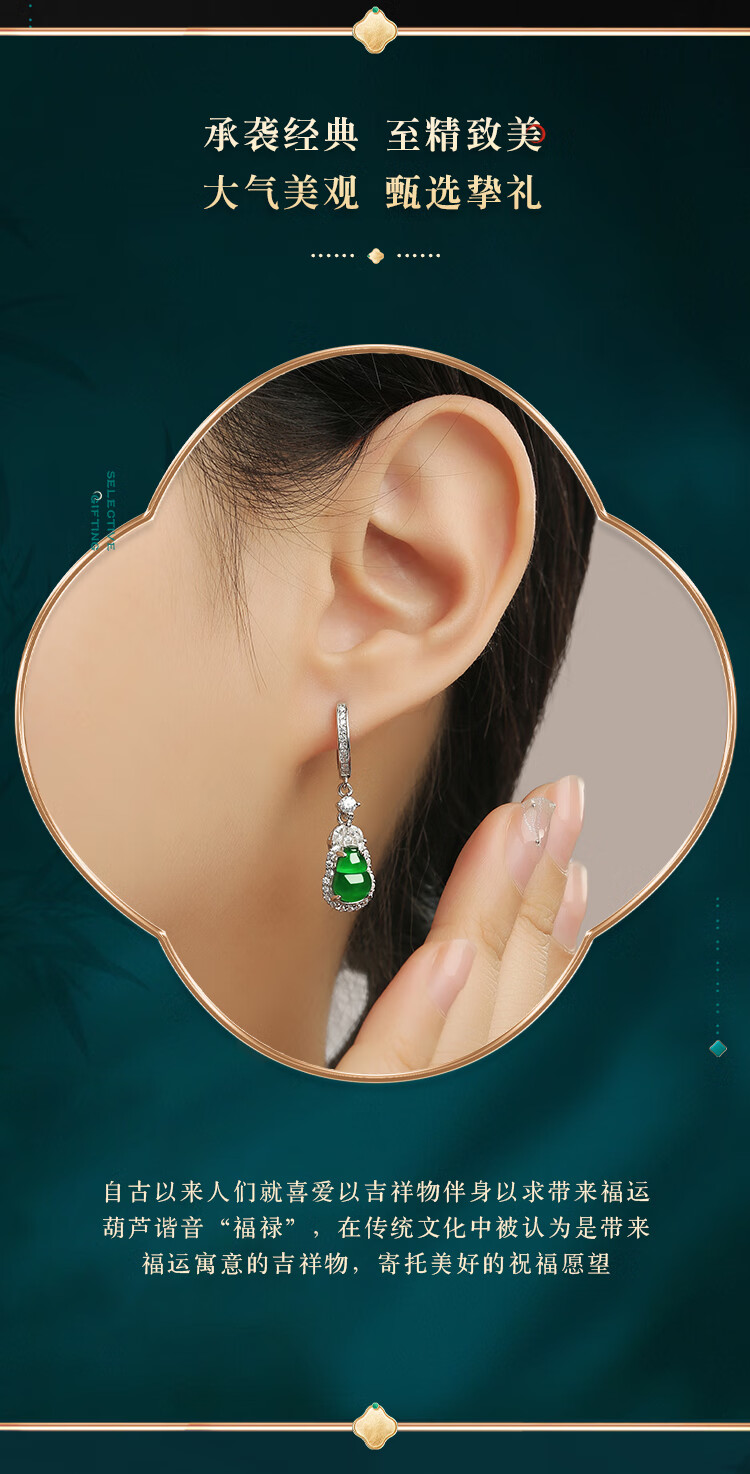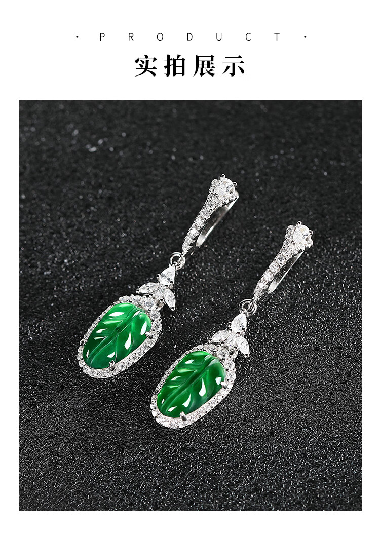Purple glass Yang Mi's same style S925 silver inlaid with imperial green A-grade jade gourd ice earrings earrings Chinese Valentine's Day gift Imperial green jade gourd earrings