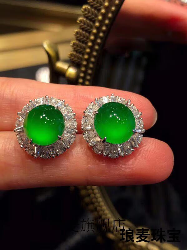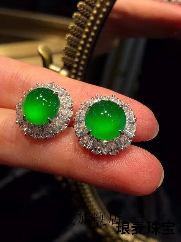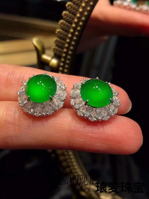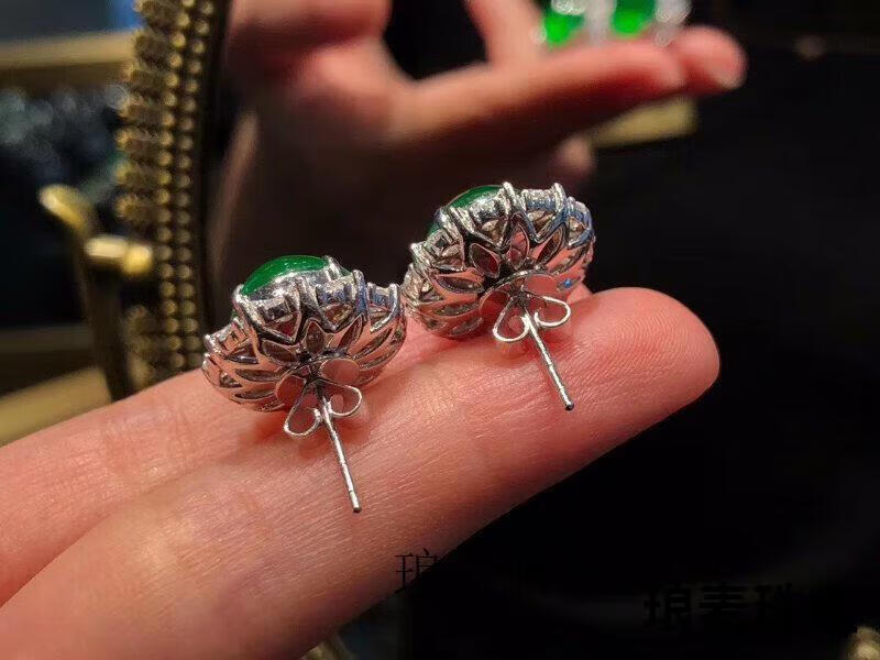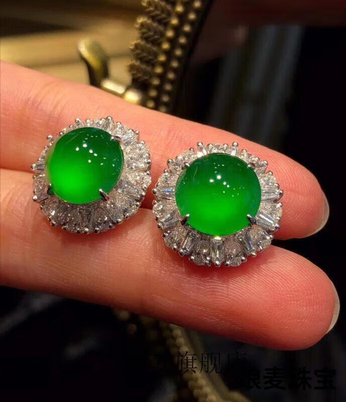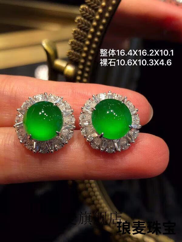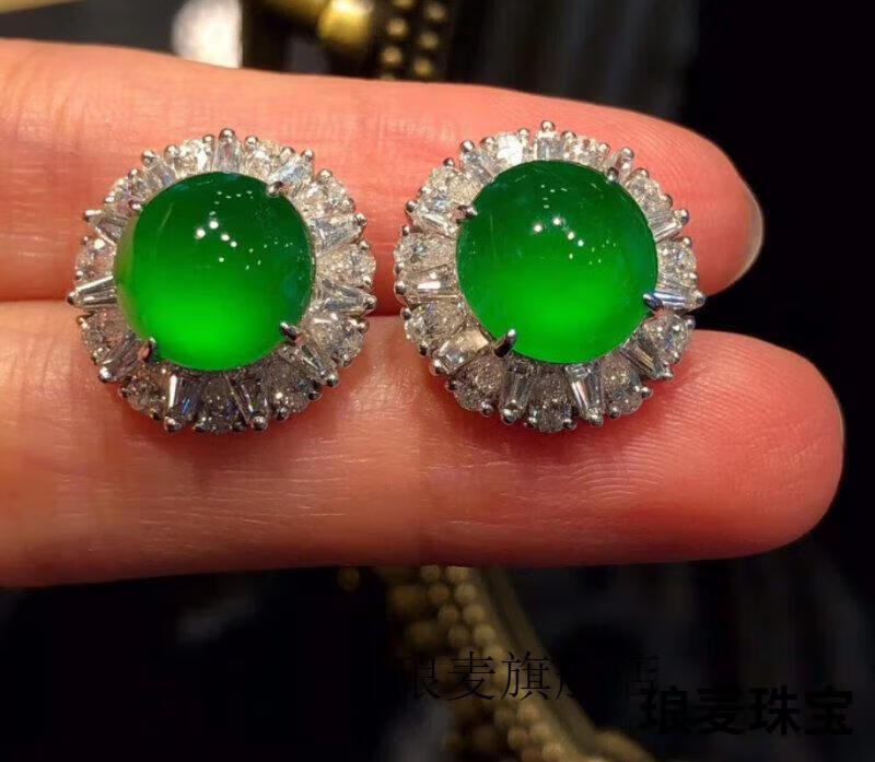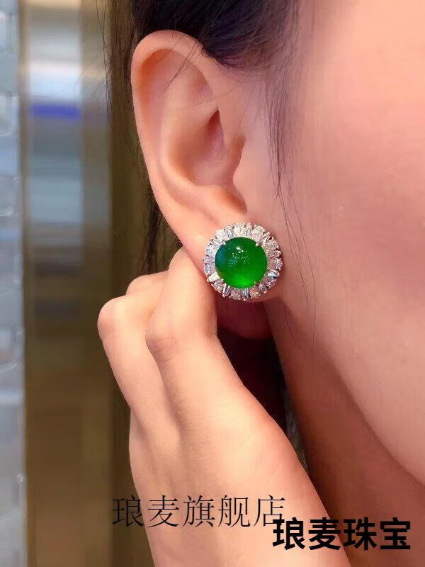 Langmai ice Zhengyang green jade earrings 18k inlaid earrings genuine optimized egg surface full green earrings
