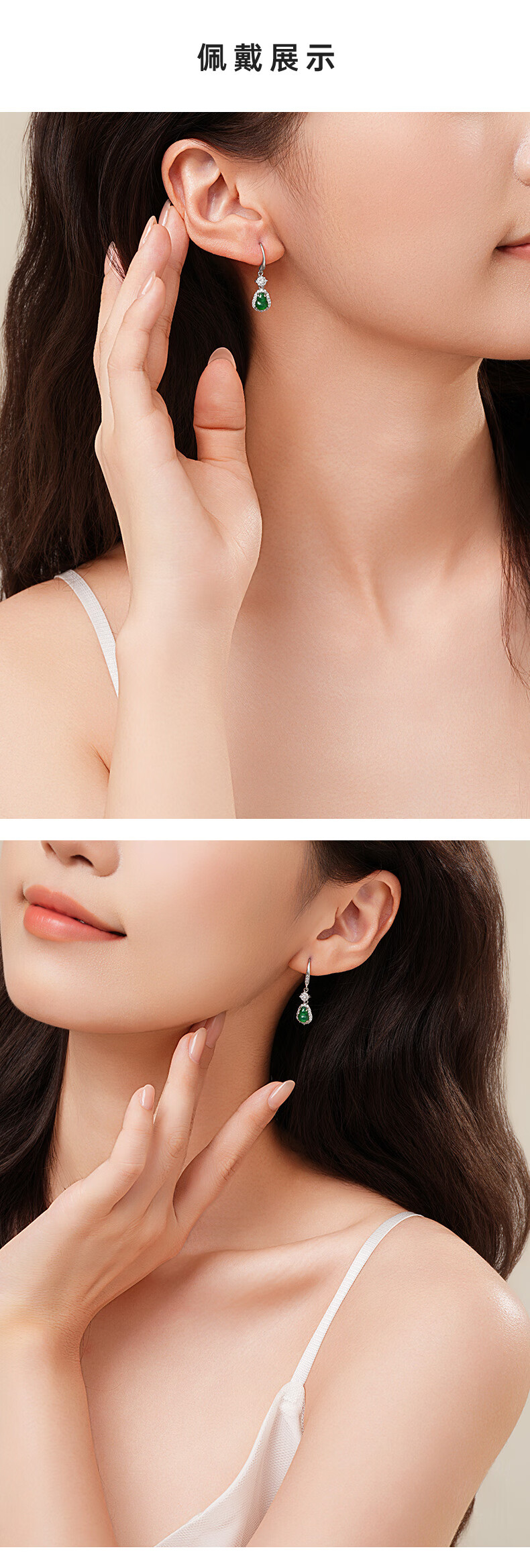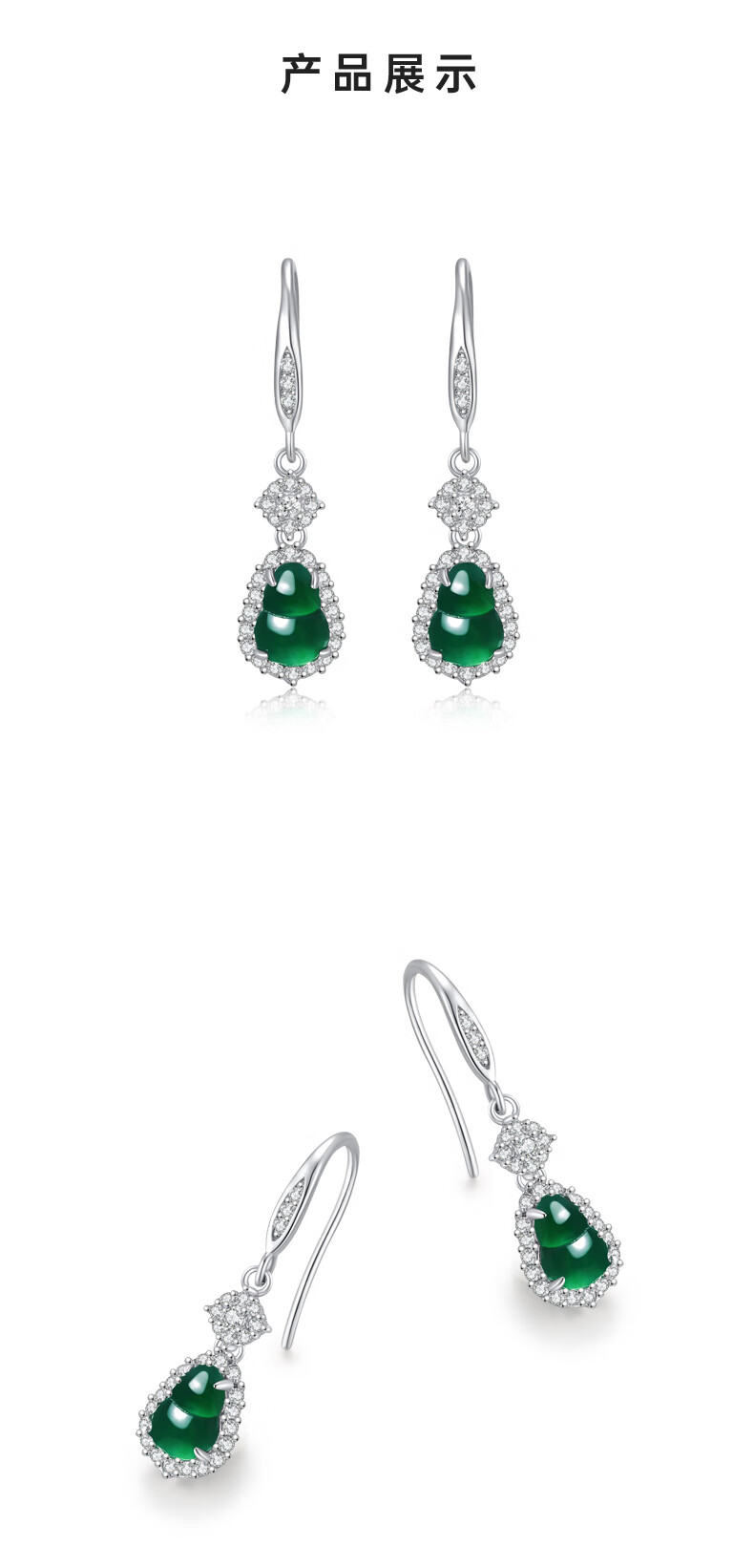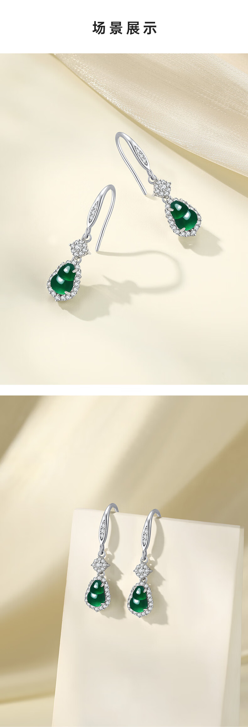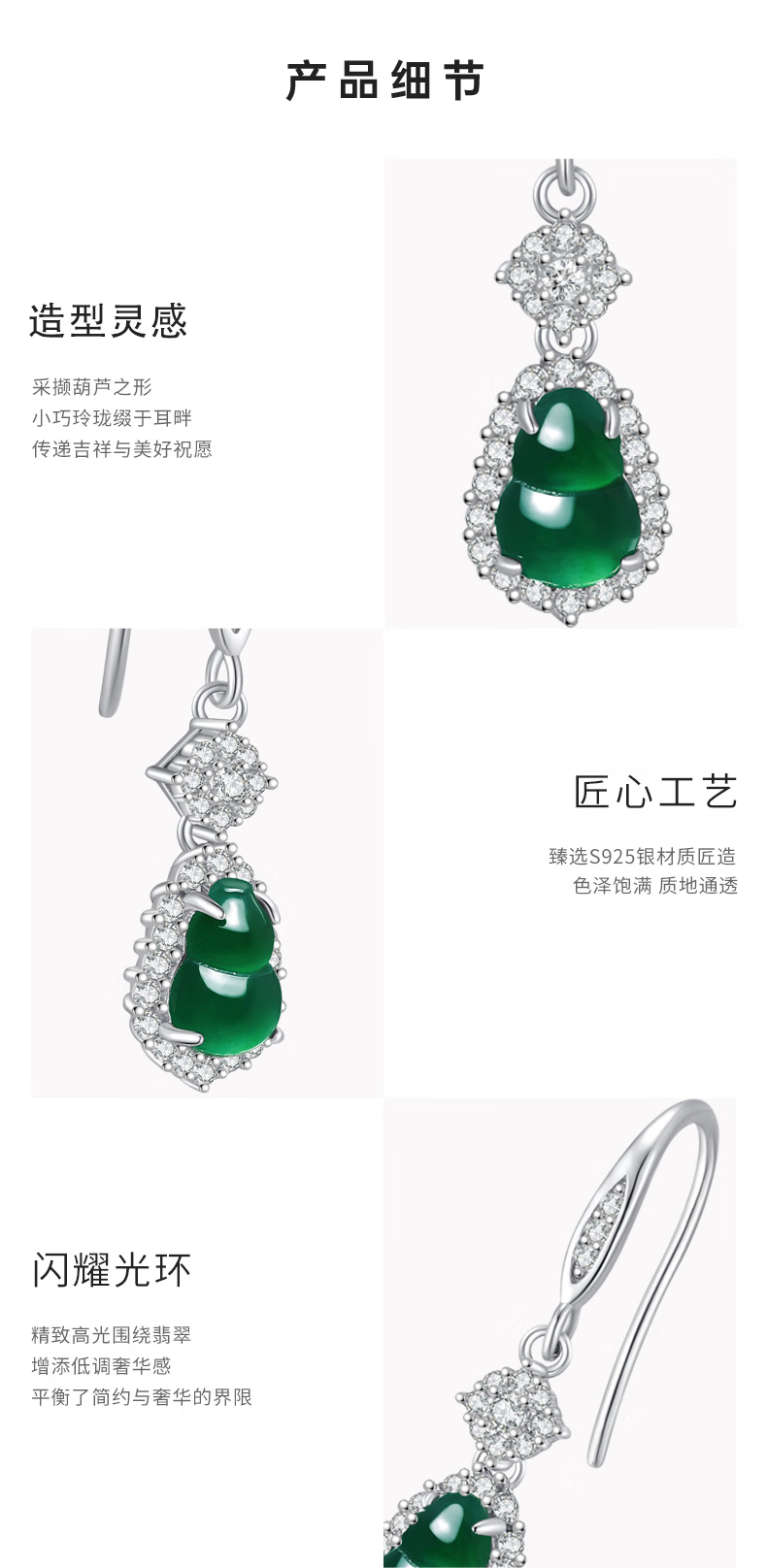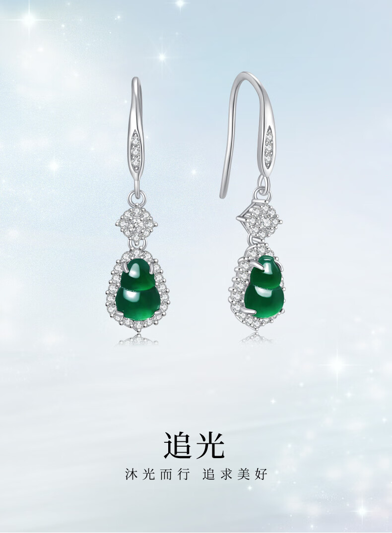 Chao Acer Hulu Fulu Chasing Light S925 Silver Jade Silver Earrings Women's Silver Earrings Ice Type Gift for Girlfriend's Birthday One Pair Contains Silicone Ear Plugs