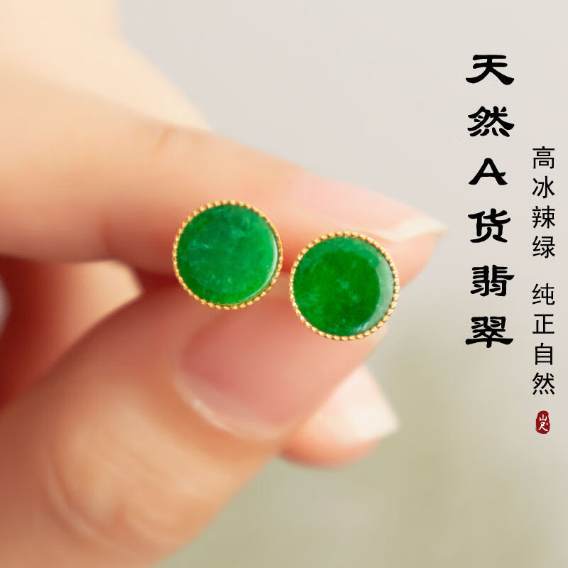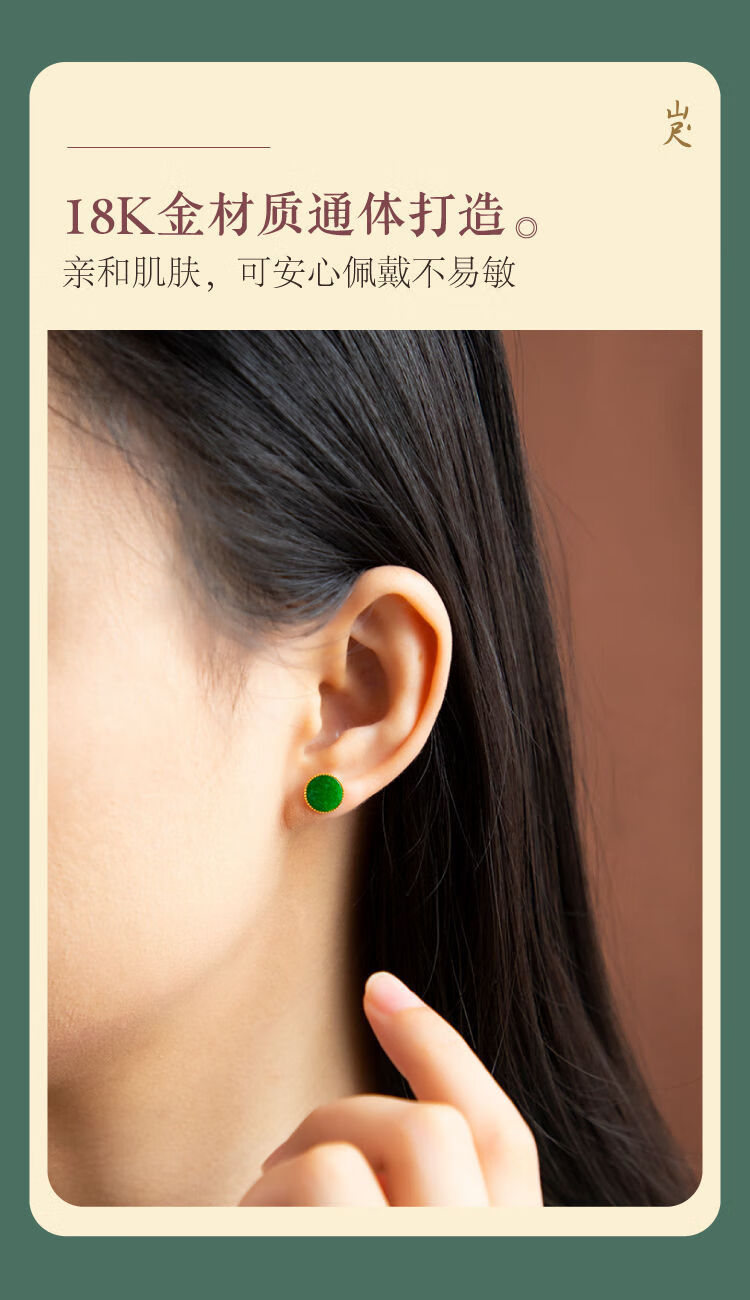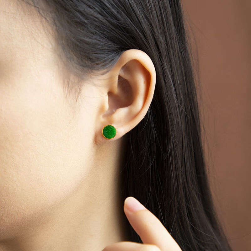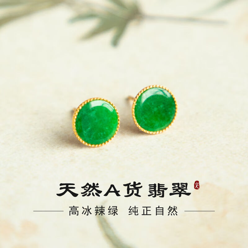 Shiniao Natural Burmese A-grade jade earrings 18k gold Yang green Wushi brand earrings earrings round brand light luxury high-end earrings for women