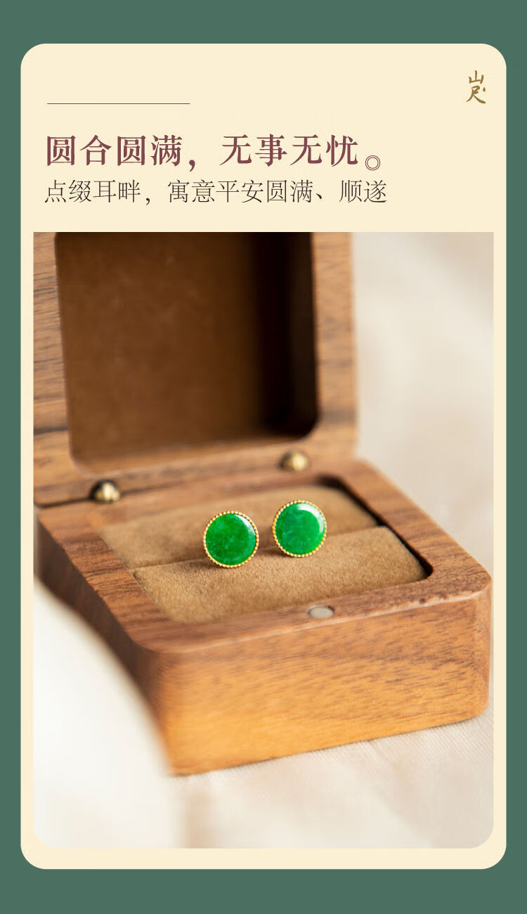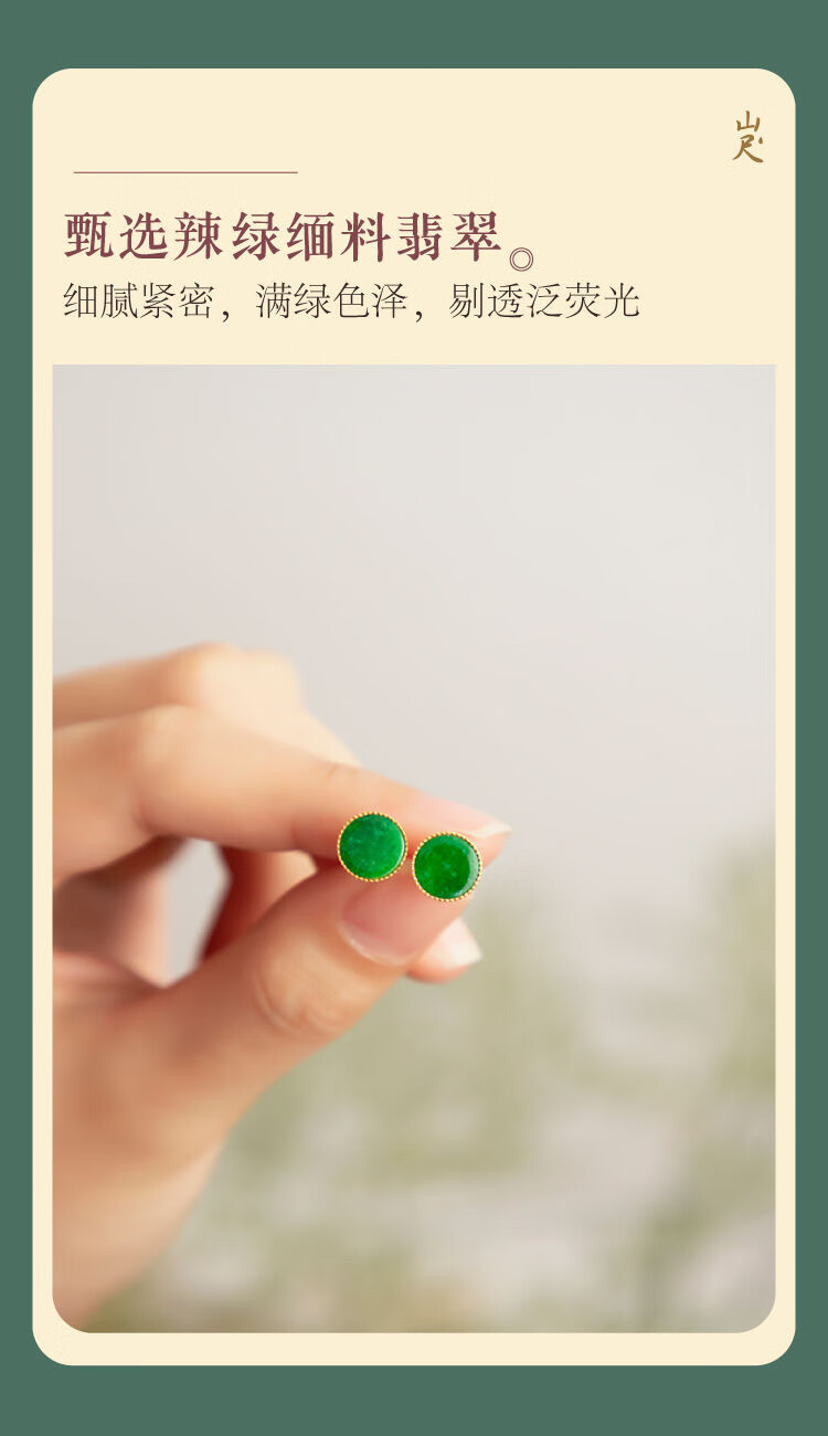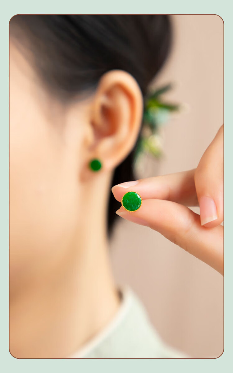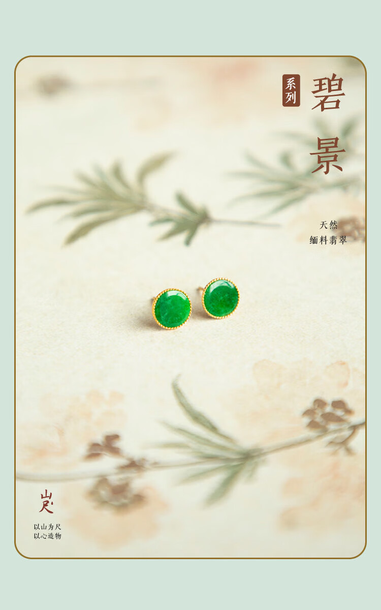 Shiniao Natural Burmese A-grade jade earrings 18k gold Yang green Wushi brand earrings earrings round brand light luxury high-end earrings for women