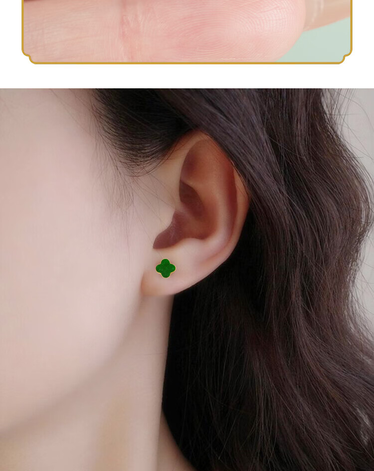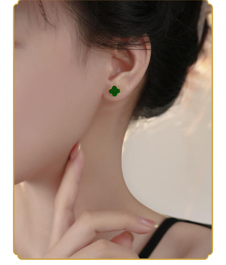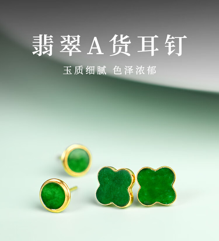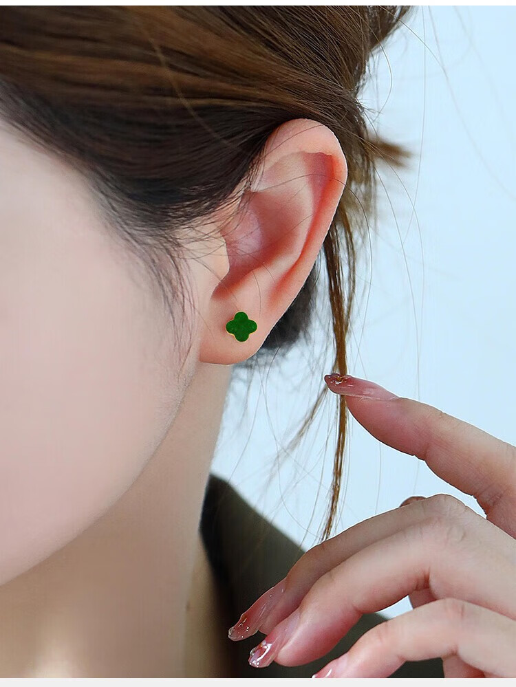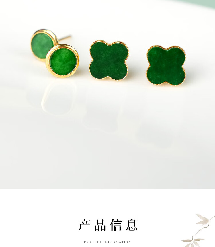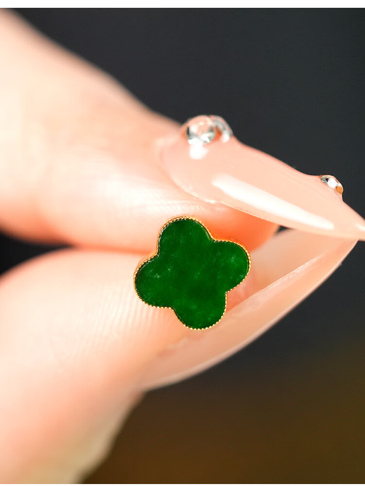 Ms. Kou's natural Burmese A-grade spicy green full green Wushi brand jade earrings four-leaf clover jade earrings safe high-end gift round jade earrings