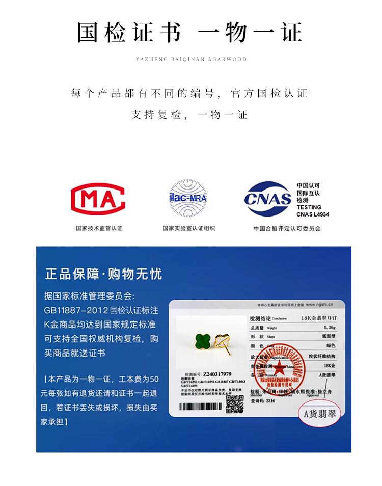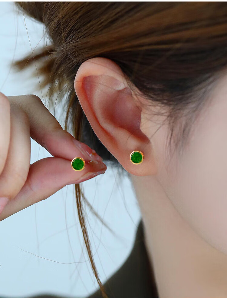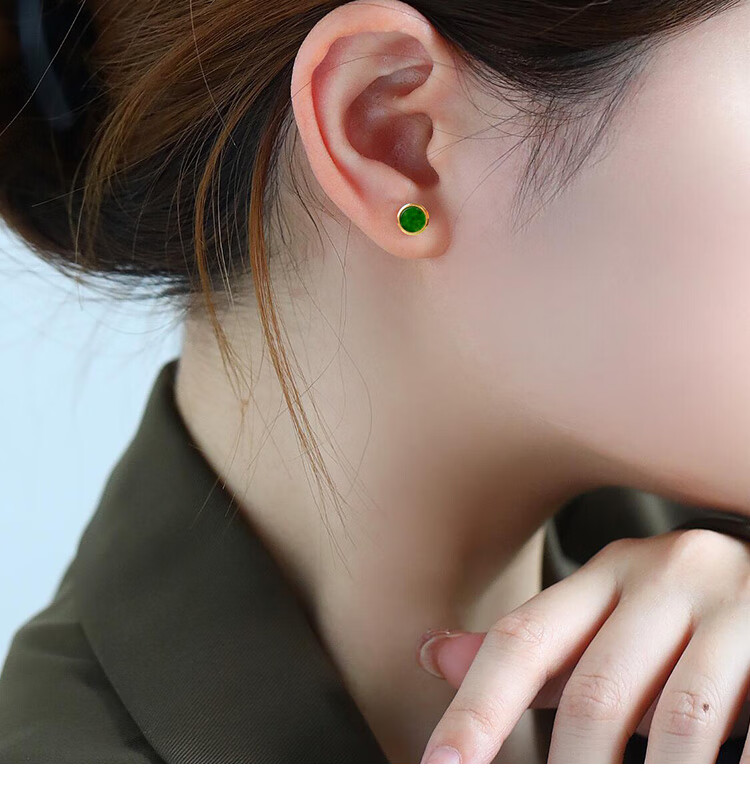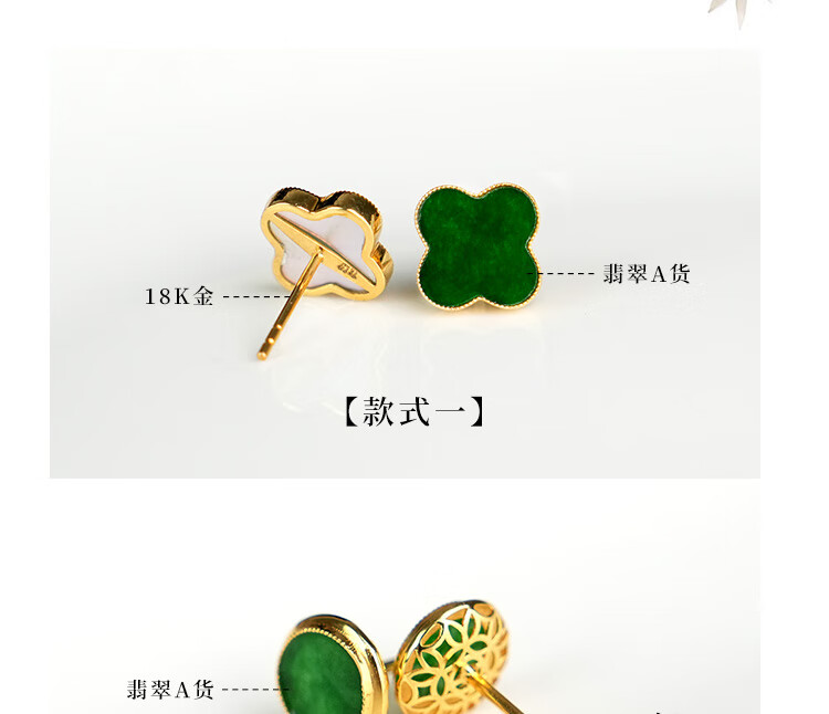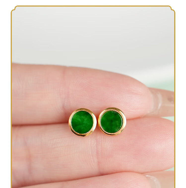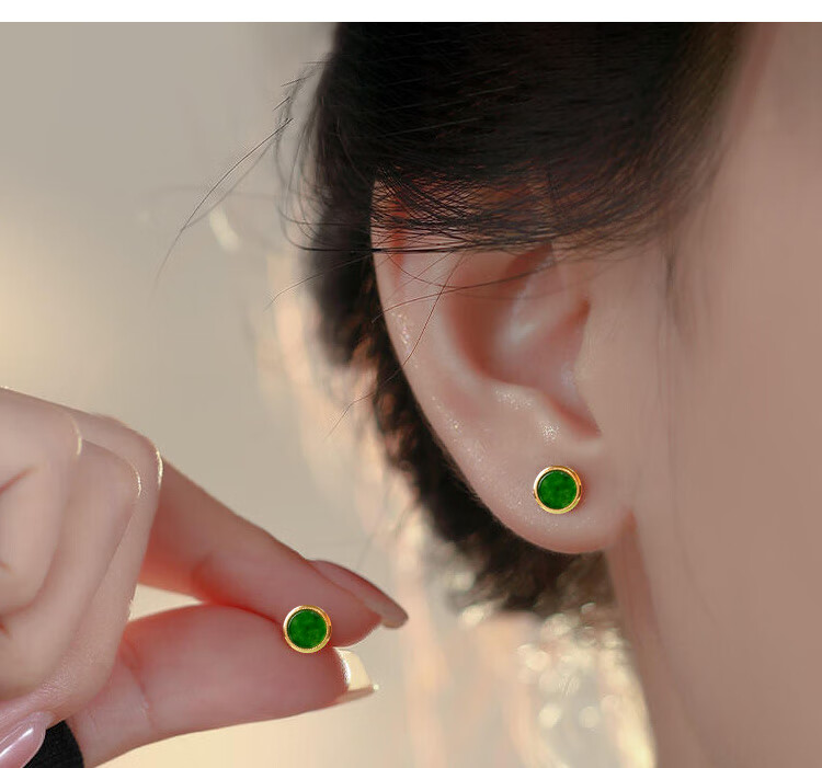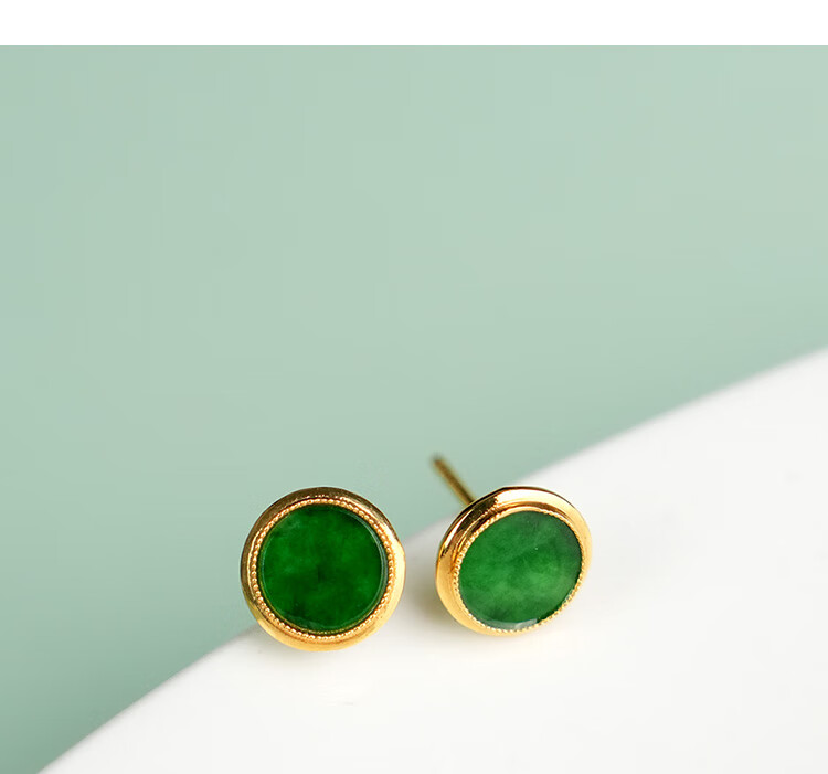 Ms. Kou's natural Burmese A-grade spicy green full green Wushi brand jade earrings four-leaf clover jade earrings safe high-end gift round jade earrings