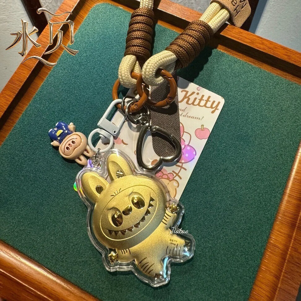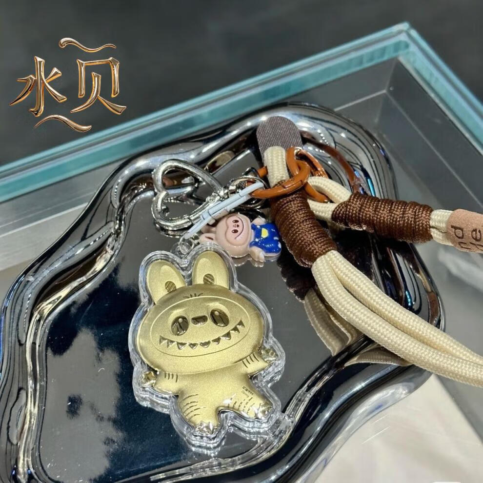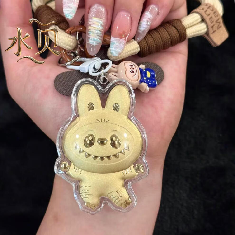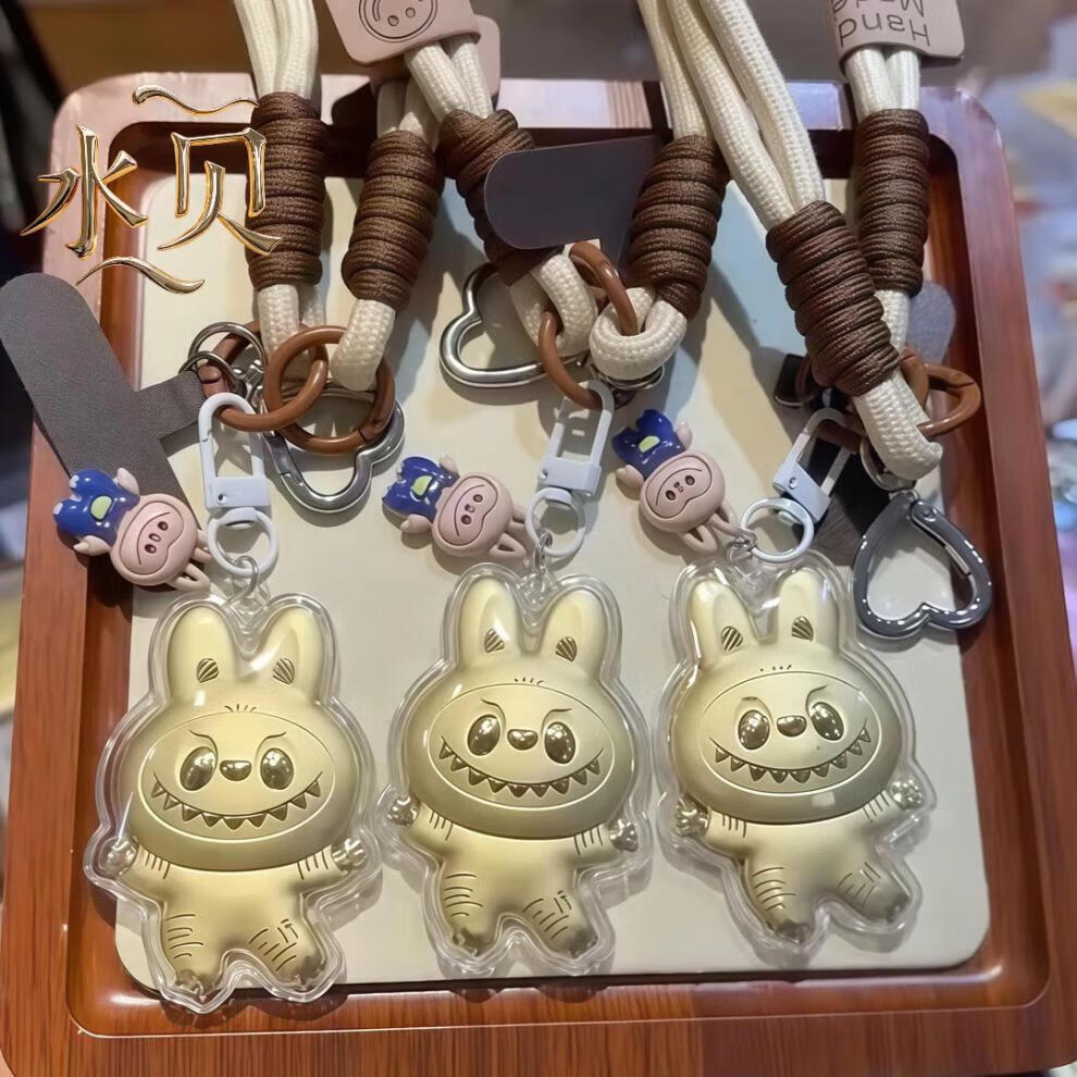 Fuchao 999 gold-containing water shell new LABUBU mobile phone lanyard 20mg creative gift schoolbag key pendant for girlfriend Labbubu lanyard + certificate + kt gift box