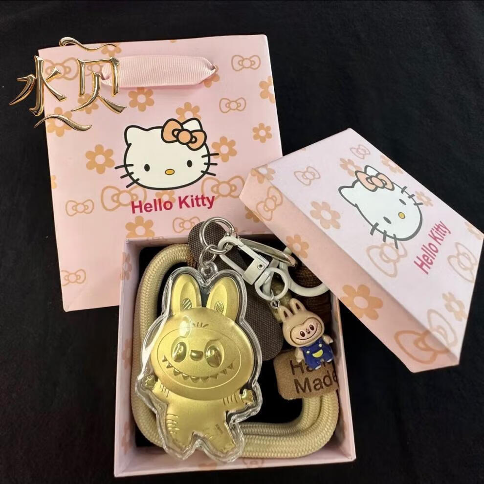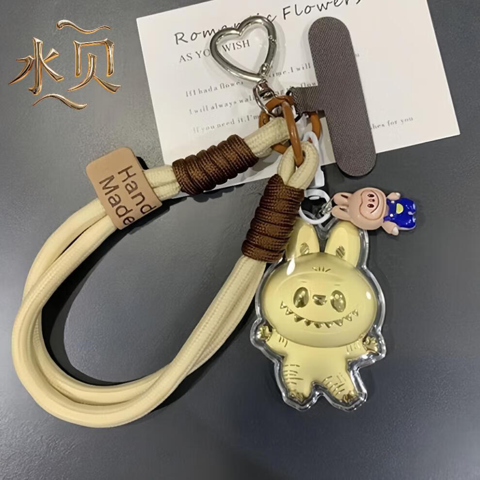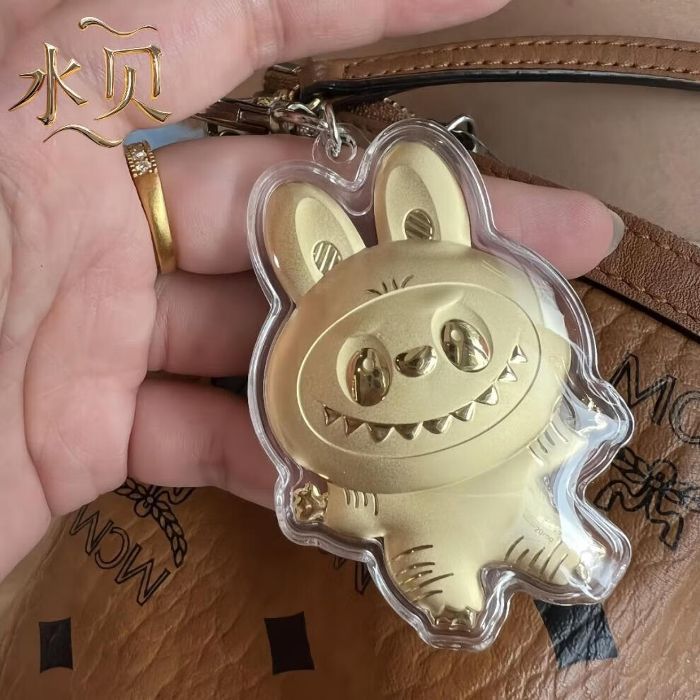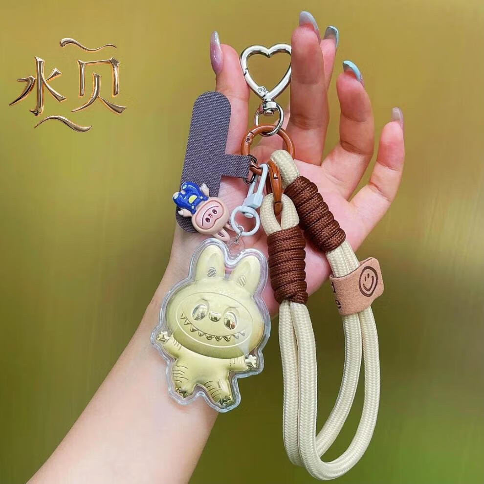 Fuchao 999 gold-containing water shell new LABUBU mobile phone lanyard 20mg creative gift schoolbag key pendant for girlfriend Labbubu lanyard + certificate + kt gift box