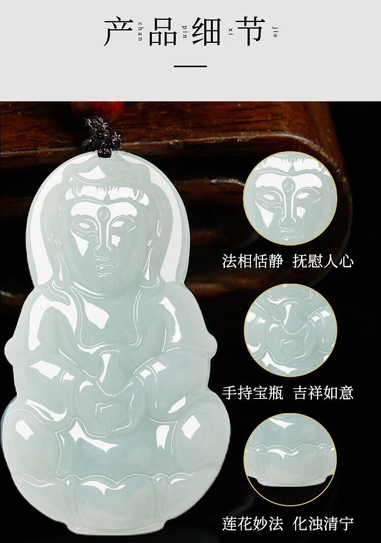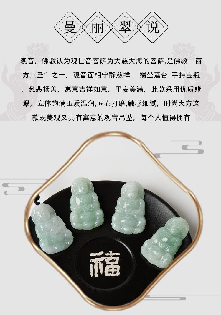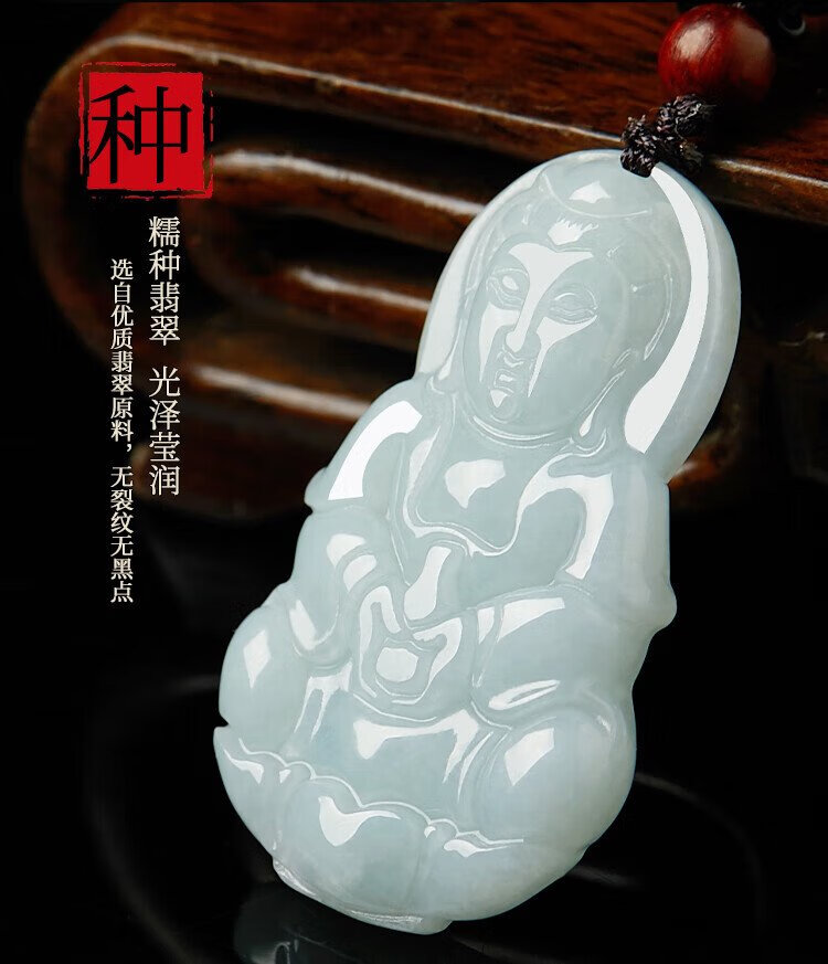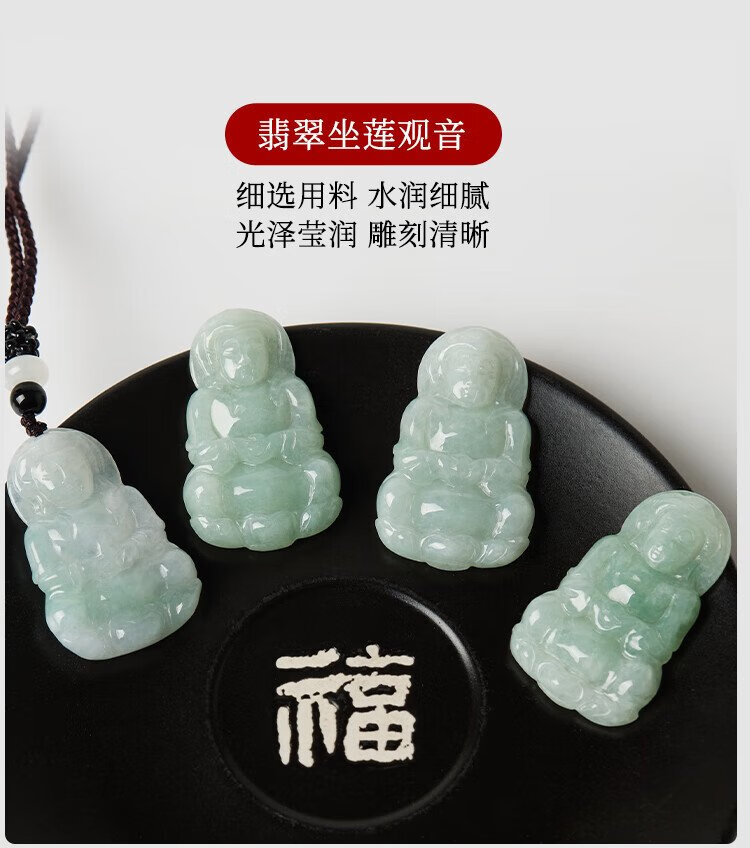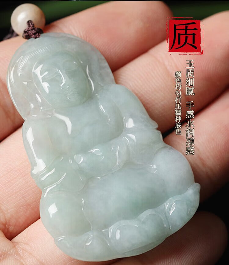 Manli Cui guaranteed price 11.11 waxy jadeite Guanyin pendant peace jade pendant necklace small gift for boyfriend with certificate
